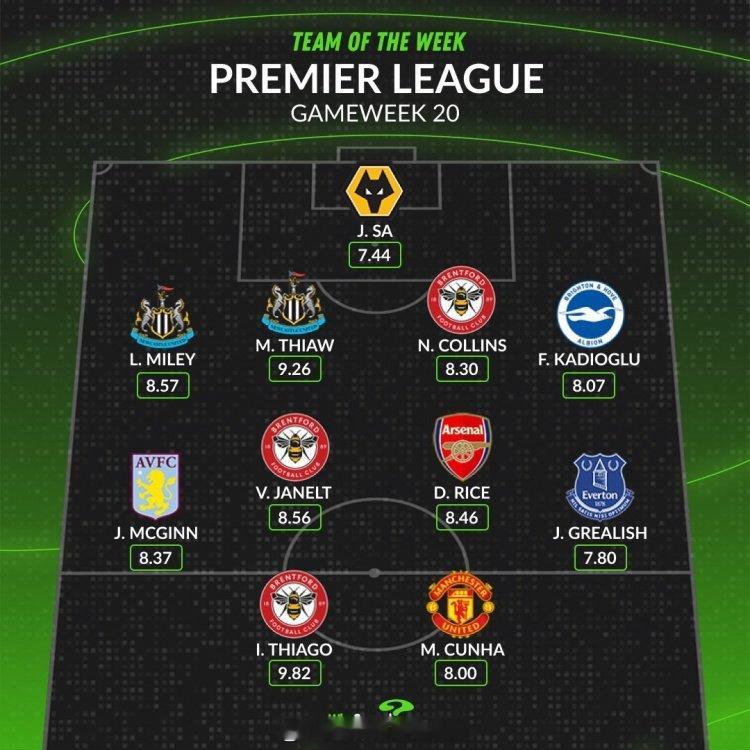 WhoScored列出英超第20轮最佳阵容,枪手赖斯在列英超联赛阿森纳著名教