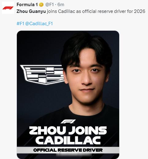 周冠宇加盟凯迪拉克周冠宇成为凯迪拉克储备车手 周冠宇的加入对凯迪拉克团队来说是一个绝佳的机会,他的加入将极大地增强团队实力!期待2026年的到来! 正式加盟凯迪拉克F1 车队,在即将到来的2026赛季担任官方储备车手