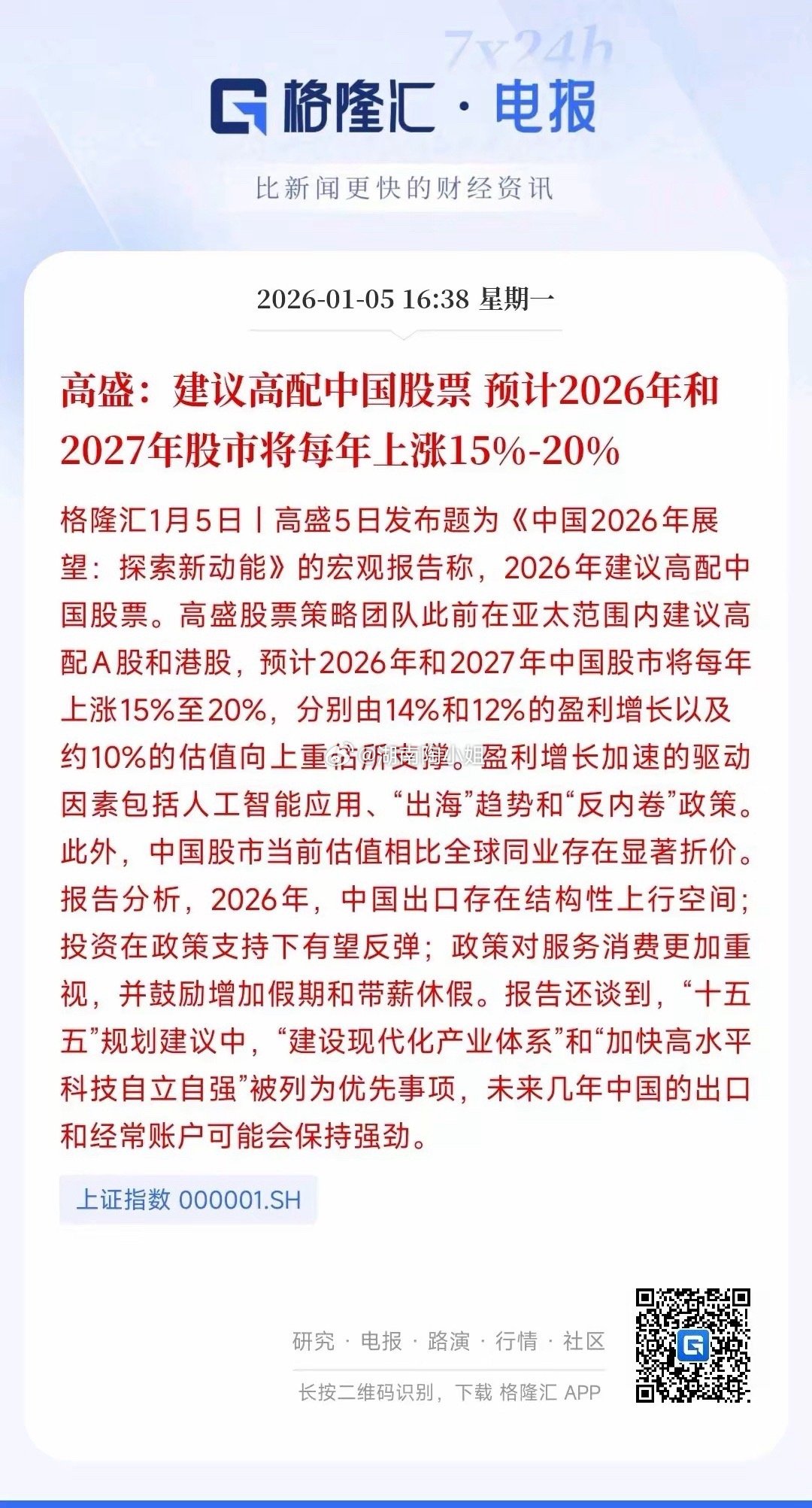 2026年A股能够上涨15%?这是高盛的预测高盛预测中国股市2026能够上涨15%-20%,主要因为中国企业盈利加速上涨。作为对比,要知道高盛预测美股2026年才能涨10%-11%之间,15%的涨幅将是巨大的空间。现在的A股正处于牛市当中,今天更是放量冲到了4000点以上,关键现在A股的权重股还没有涨,现在的涨幅基本上都是来自于成长板块。如果接下来权重股能够上涨,指数上涨幅15%根本就不算什么事,所以说2026年指数涨15%完全有可能。