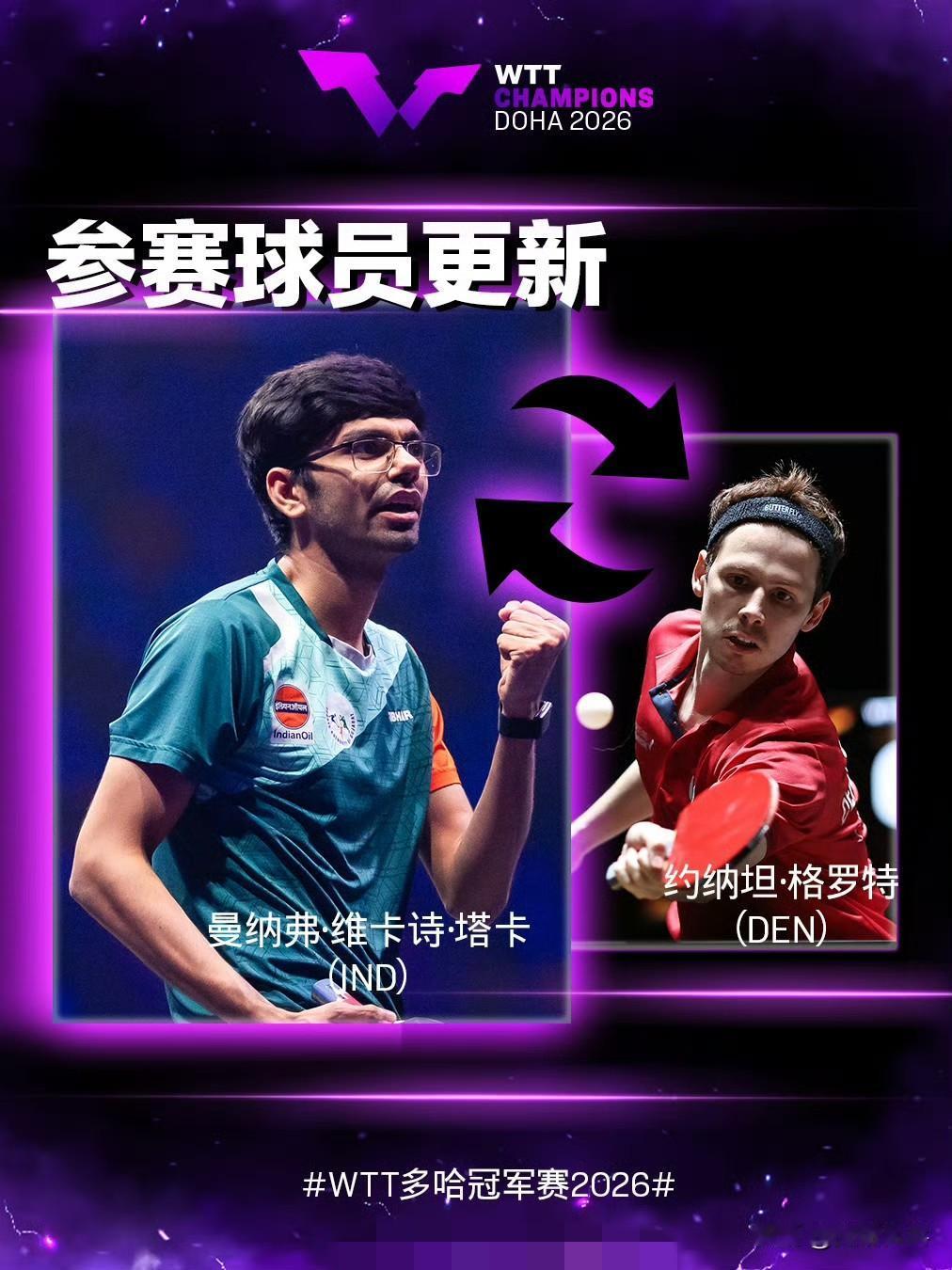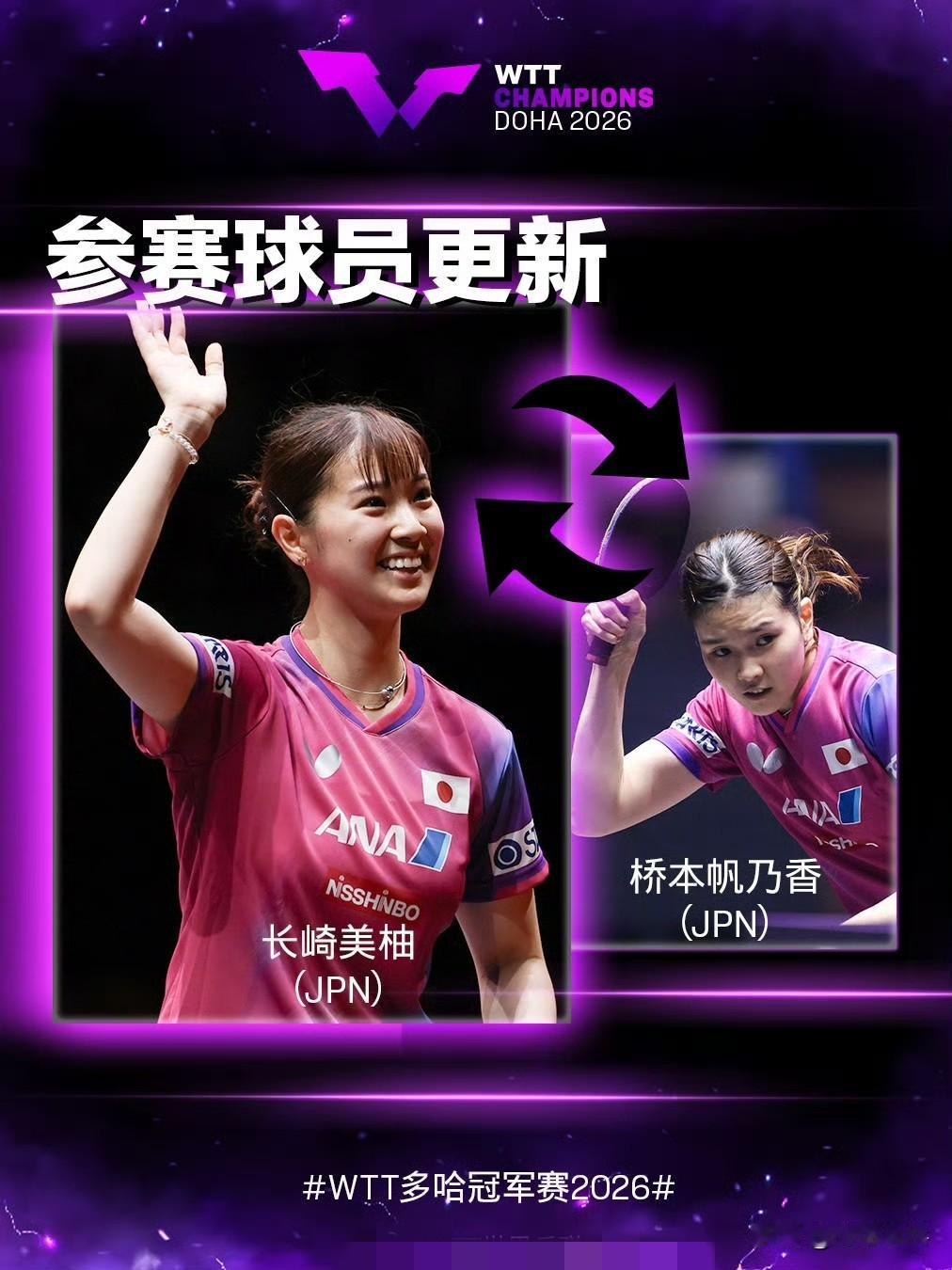 参赛球员更新:1.5 桥本帆乃香🇯🇵退赛,长崎美柚🇯🇵递补参赛; 约纳坦·格罗特🇩🇰退赛,曼纳弗·维卡诗·塔卡🇮🇳递补参赛