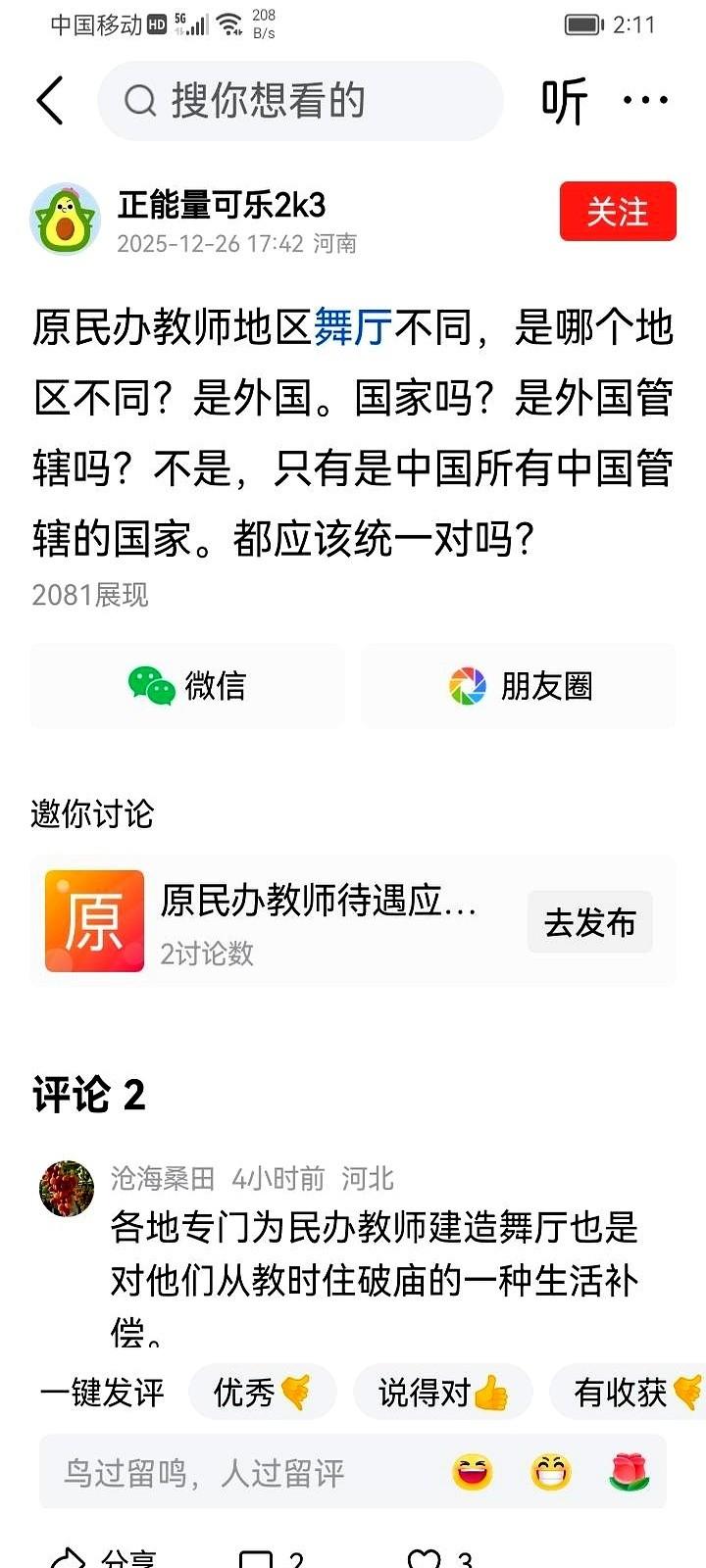 给那帮七老八十、干了一辈子民办教师的老头老太太盖舞厅,我刚听到这消息,第一反应是:疯了吧? 图啥呢?让他们去蹦迪吗?都快走不动道了。 可我坐那儿琢磨了一会儿,突然就有点不是滋味儿。 我们这代人,或者我们父母那代人,谁的记忆里没有一个这样的老师? 土坯房,破窗户,一块黑板用到反光,几根粉笔头宝贝似的捏在手里。他们就拿着那点微薄到几乎可以忽略不计的补贴,把一辈子耗在了那三尺讲台上,耗在了一个个鼻涕拉瞎的小屁孩身上。 后来,我们都走出大山了,去北上广了,一个个混得人模狗样了。 他们呢? 他们还在那儿。老了,动不了了,很多人就像用完的粉笔头,被扔在了时代的角落里,悄无声息。 所以啊,回过头再看这个“舞厅”。 你真以为是让他们跳舞? 扯淡。 那是给他们一个念想,一个抱团取暖的地方,一个最后的体面。 是有人在用一种笨拙的方式大声说:我们还记着你们呢!你们的晚年,不该只有孤独和冷清。 至于后来有人说,等他们百年之后,要把舞厅改成“文昌庙”,把他们跟孔夫子摆一块儿受香火…… 这话听着是挺玄乎,甚至有点像个段子。 但你品,你细品。 这话里头,藏着多大的心酸和不甘啊? 就是觉得,这帮燃烧了自己一辈子的老教师,就配得上跟圣人平起平坐。他们就是我们这个时代的“先贤”。 一个舞厅,一座庙,其实说的都是一回事儿: 那份迟到了几十年的尊重,该还了。