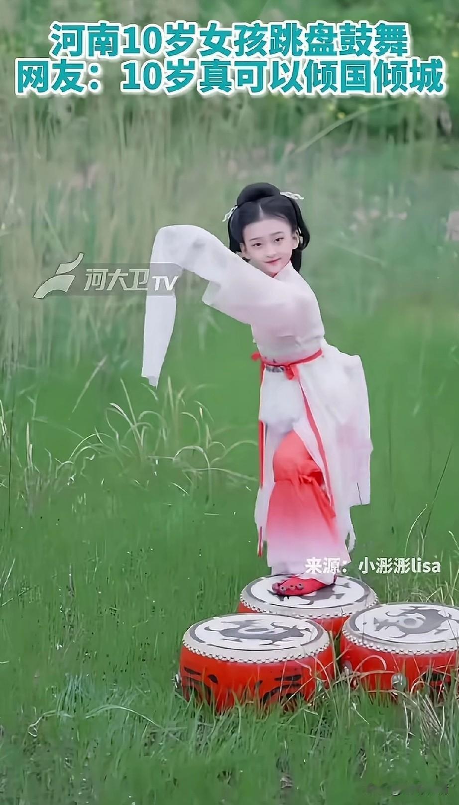 河南10岁女孩跳盘鼓舞, 直接震惊了全国, 只见她穿着古装, 站在三个鼓面之上, 做着各种各样标准的动作, 搭配上古代的音乐, 真的是美哭了, 一笑一颦尽显西施本色, 长袖珊珊惹人爱, 一个10岁的女孩, 真的做到了倾城倾国, 怪不得君王不早朝, 换个大美女跳上这样的舞蹈, 谁看了不迷糊? 一个10岁的女孩都能跳的如此完美, 更何况是十七八岁的少女, 谁见了不惹人怜, 古代说的一点都没错, 也怨不得那些沉迷美色的君王, 因为这些舞蹈实在是太美了, 大家觉得这个小女孩跳的好看吗? 舞蹈 欢乐舞蹈分享 汉代盘鼓舞 韩姑娘鼓舞队 楚妹鼓舞团 晋城山妹鼓舞团
