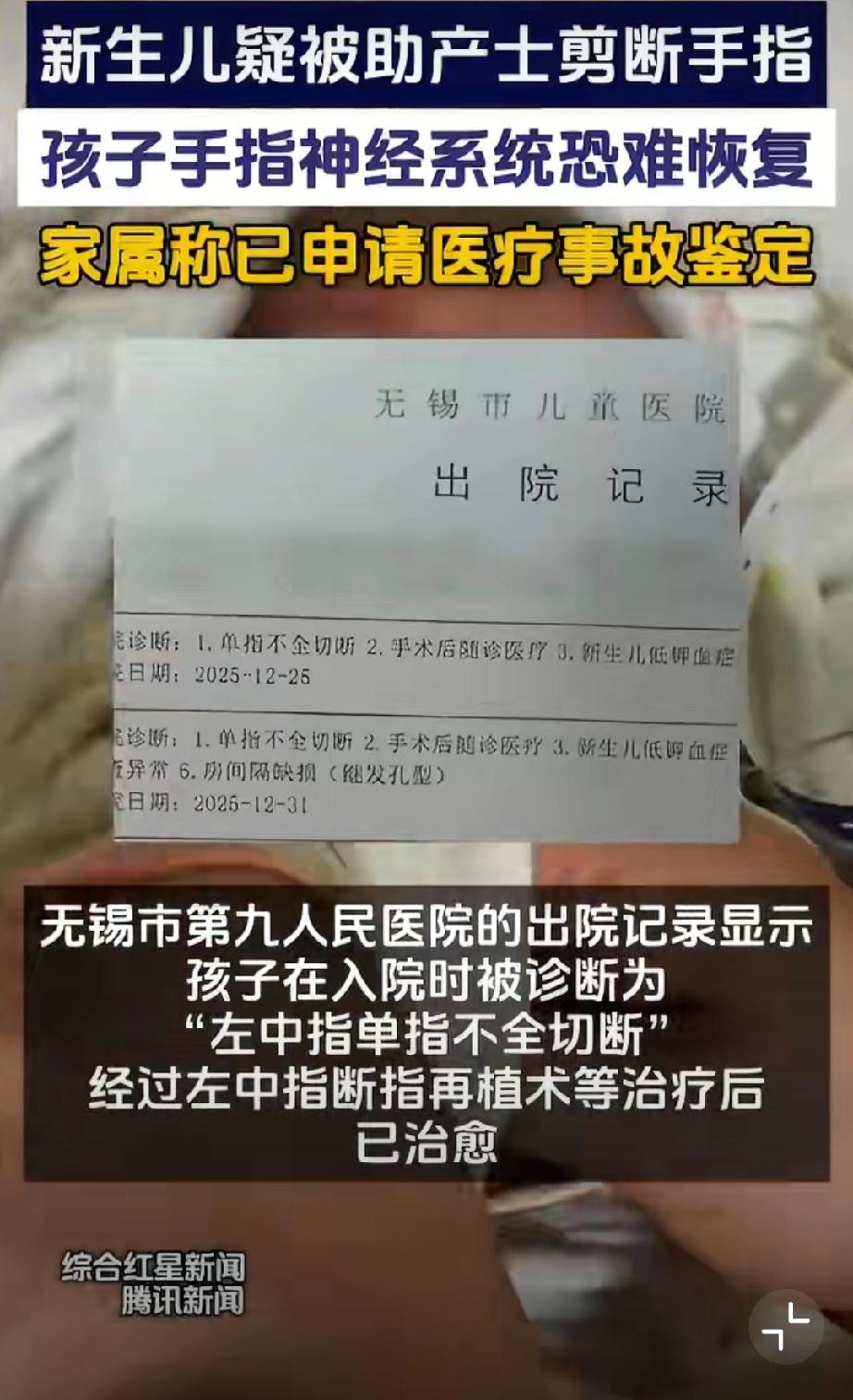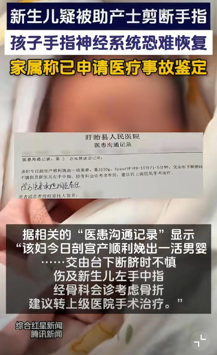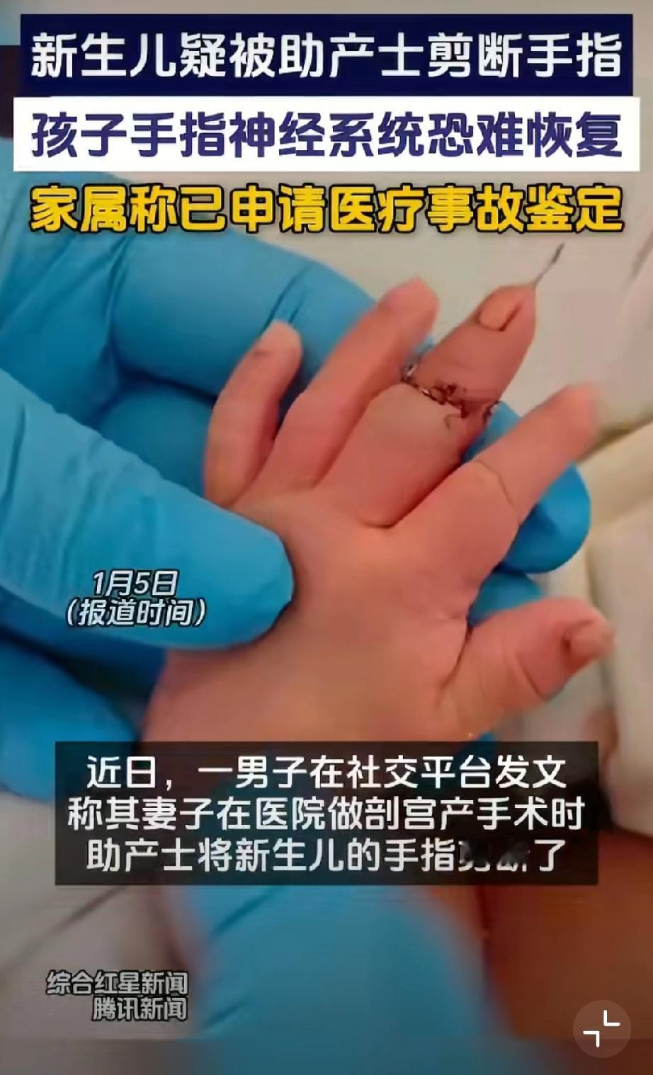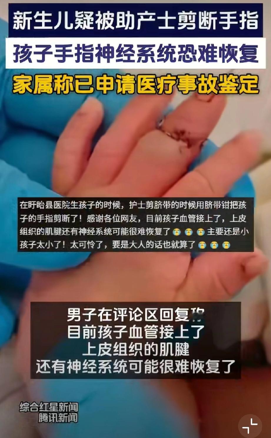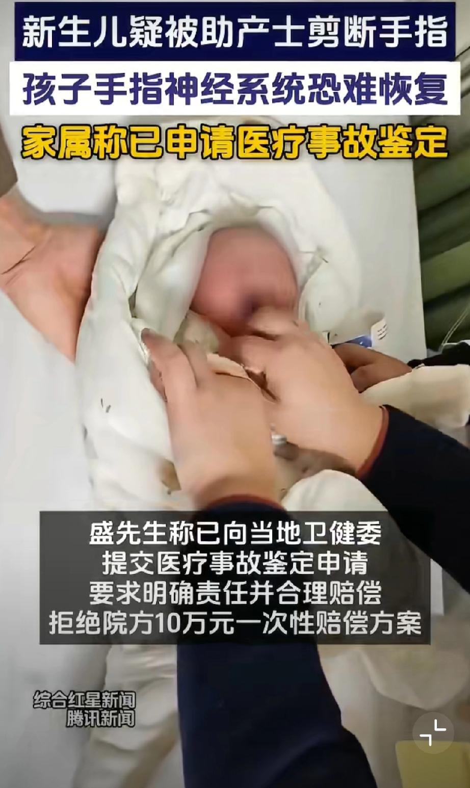 断指新生儿父亲拒绝医院10万赔偿。 新生儿父亲说神经已经接不上了...赔偿多少不说,我只是觉得这样的失误太离谱了...作为助产护士,怎么会犯这种错误,还大言不惭说新生儿乱动导致...早产儿医疗事故 婴儿手术风险 婴儿医疗事故