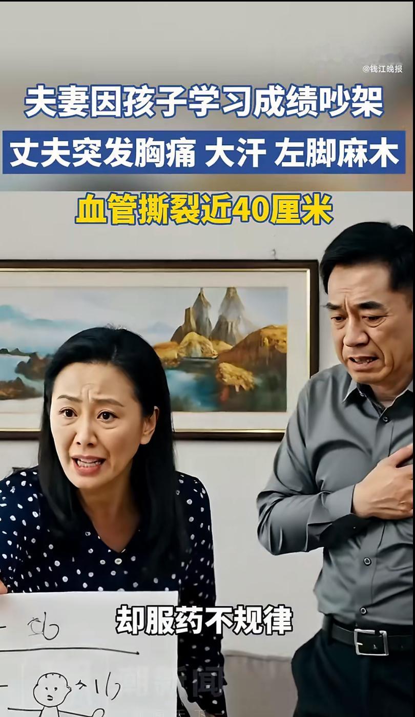 江苏扬州的张先生怎么也没想到,一场因孩子教育问题引发的夫妻争吵,竟让自己躺在了生死边缘。情绪激动后,他突发剧烈胸痛,被紧急送医确诊为主动脉夹层——血管内膜被“气炸”撕裂,长达40厘米的血管险象环生。医生直言:“再晚一步,血液冲破血管壁就会大出血致死。”这起看似离奇的事件,实则敲响了一记震撼人心的健康警钟:情绪失控,竟能成为引爆生命的“定时炸弹”。 医学解读这场“血管爆炸”并不夸张。当人愤怒时,肾上腺素飙升,血压瞬间突破安全阈值,对高血压患者而言,脆弱的血管壁如同高压水管遭遇猛烈冲击,极易撕裂。数据显示,我国2.7亿高血压患者中,仅18%血压控制达标,而情绪激动能让血压飙升至200毫米汞柱以上,直接撕裂血管内膜。更令人心惊的是,约20%的心血管事件与情绪波动直接相关。张先生的案例并非孤例,每年全国数千人因“情绪雷区”倒下,很多人没能像他一样幸运获救。 这场风波折射出三重深层问题:首先是健康认知的盲区。公众常将“少生气”当作轻飘飘的劝告,却不知对高血压患者而言,愤怒是致命的健康威胁。许多人直到躺在病床上才恍然大悟:“从没想过吵架能要命。”其次是家庭关系的“隐形杀伤力”。夫妻争吵本是生活常态,但若一方患有高血压,激烈争执就可能成为“压垮骆驼的最后一根稻草”。医生感叹:“我们能装支架修复血管,却装不了患者的脾气。”更深层的是社会对情绪健康的忽视。相较于吸烟、肥胖等风险,情绪管理常被边缘化,殊不知它是心血管疾病的“隐形推手”。 事件带来的启示远超个案本身。高血压患者必须将情绪管理纳入生命防线:规律服药、监测血压是基础,更要学会识别“情绪引爆点”,通过深呼吸、正念等方法降温怒火。家庭成员也需成为“健康哨兵”,警惕突发胸痛——那种“从胸到背被撕裂”的剧痛,是血管破裂的求救信号,必须分秒必争送医。 评论区想问问大家:如果你或家人患有高血压,你会如何调整沟通方式避免“情绪引爆”?是选择冷静沟通,还是学习情绪急救技巧?健康不是一个人的事,家庭的包容与智慧,往往能筑起比药物更坚固的防线。 张先生的经历如同一声惊雷:生活琐事或许难免,但生命不能承受情绪之重。血管的韧性需要日常呵护,情绪的稳定更是守护健康的铠甲。当我们学会用理性浇灭怒火,用关怀代替争执,或许就能避免更多“血管被气炸”的悲剧。别让一时的冲动,成为无法挽回的终生遗憾。健康面前,每一次对情绪的克制,都是对生命的深情告白。 (案例来源:钱江晚报)
