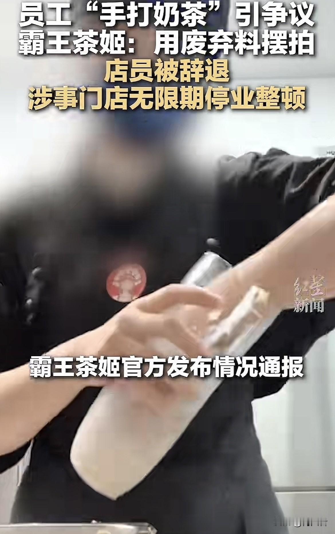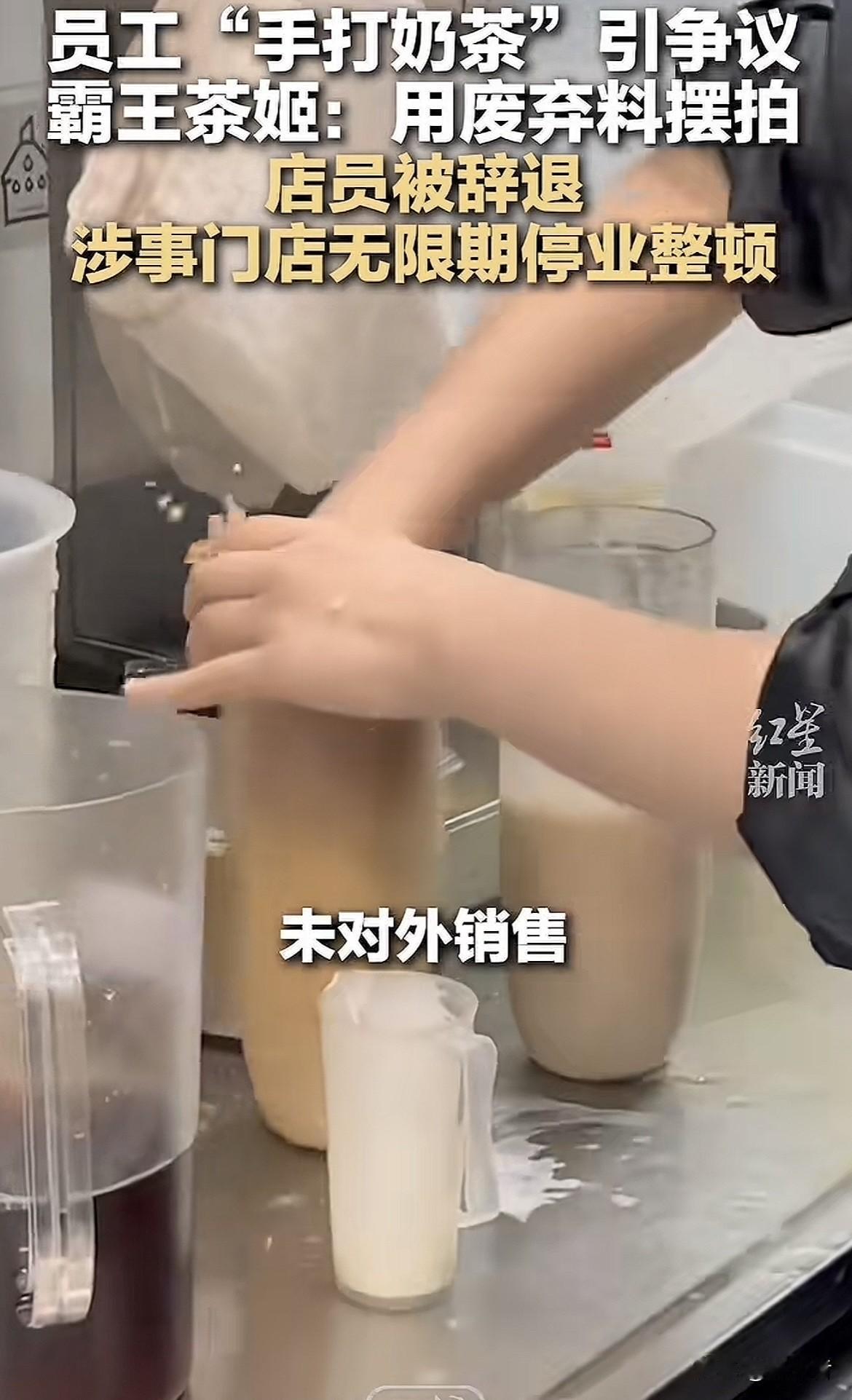 这店员为博流量,跟风“印度奶茶”热梗,在快打烊时用报损废弃物料模仿摆拍“手打奶茶”,还发上网。虽物料拍完倒掉没销售,现场也做了清洁消毒,但店员事后还想掩盖错误。 霸王茶姬表示很“震惊与愤怒”,毕竟这行为严重违反多项规定,触碰品牌价值观底线。目前涉事门店已无限期停业整顿,这店员真是坑惨了门店。