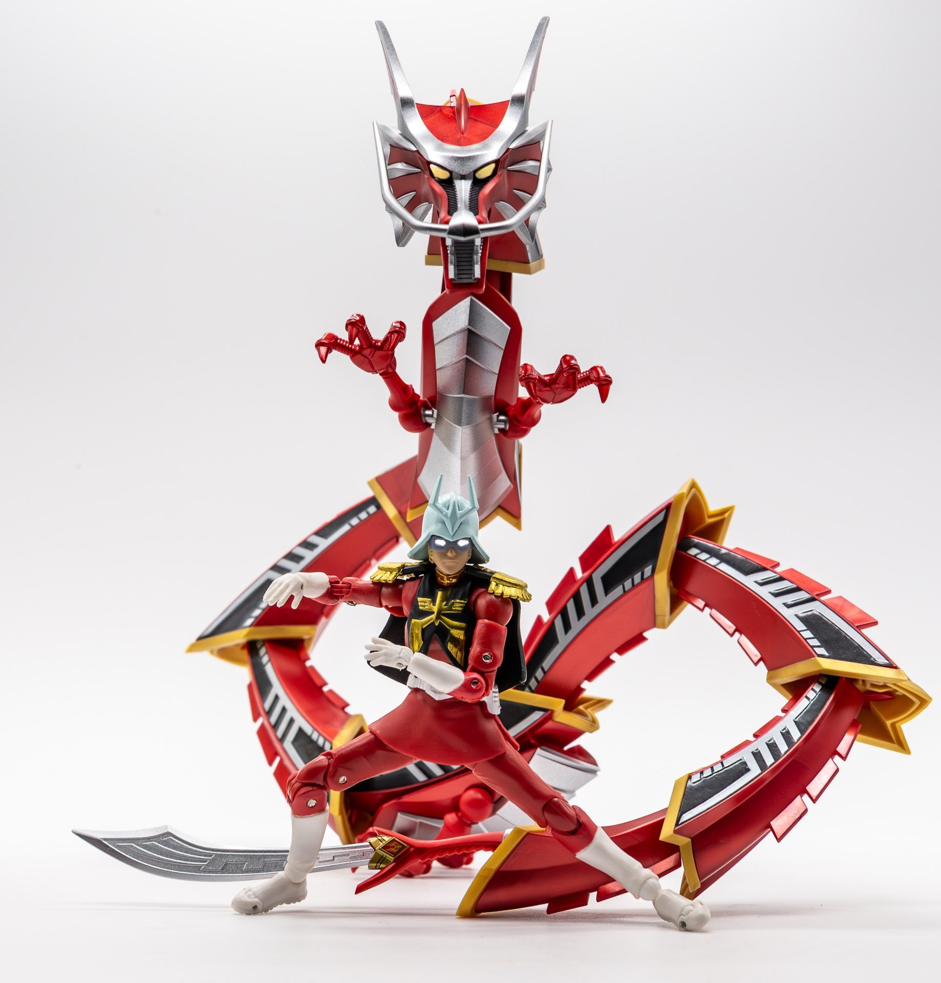 青山刚昌资料馆中的展出一张照片,在学院祭上青山刚昌扮演夏亚,用板车拖着传说巨神伊