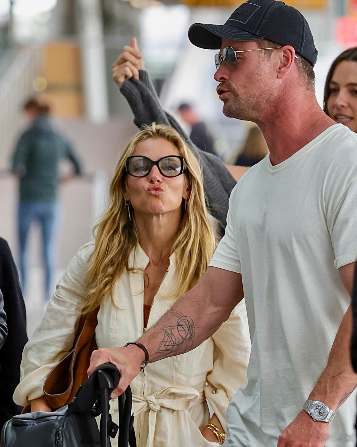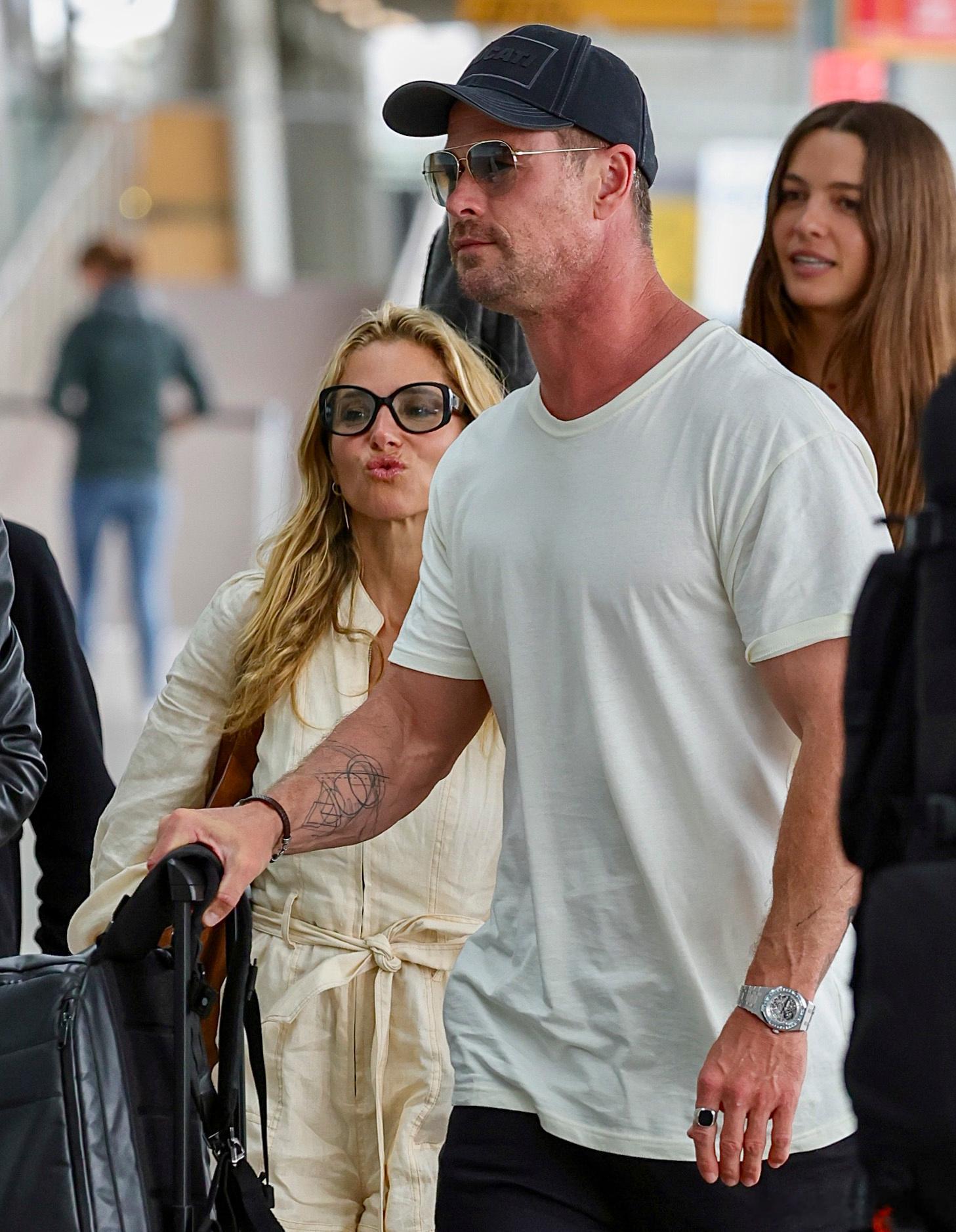 Chris Hemsworth克里斯海姆斯沃斯和妻子elsa pataky埃尔莎帕塔奇抵达悉尼机场准备返回拜伦湾,两口子还隔空嘟嘴亲了起来