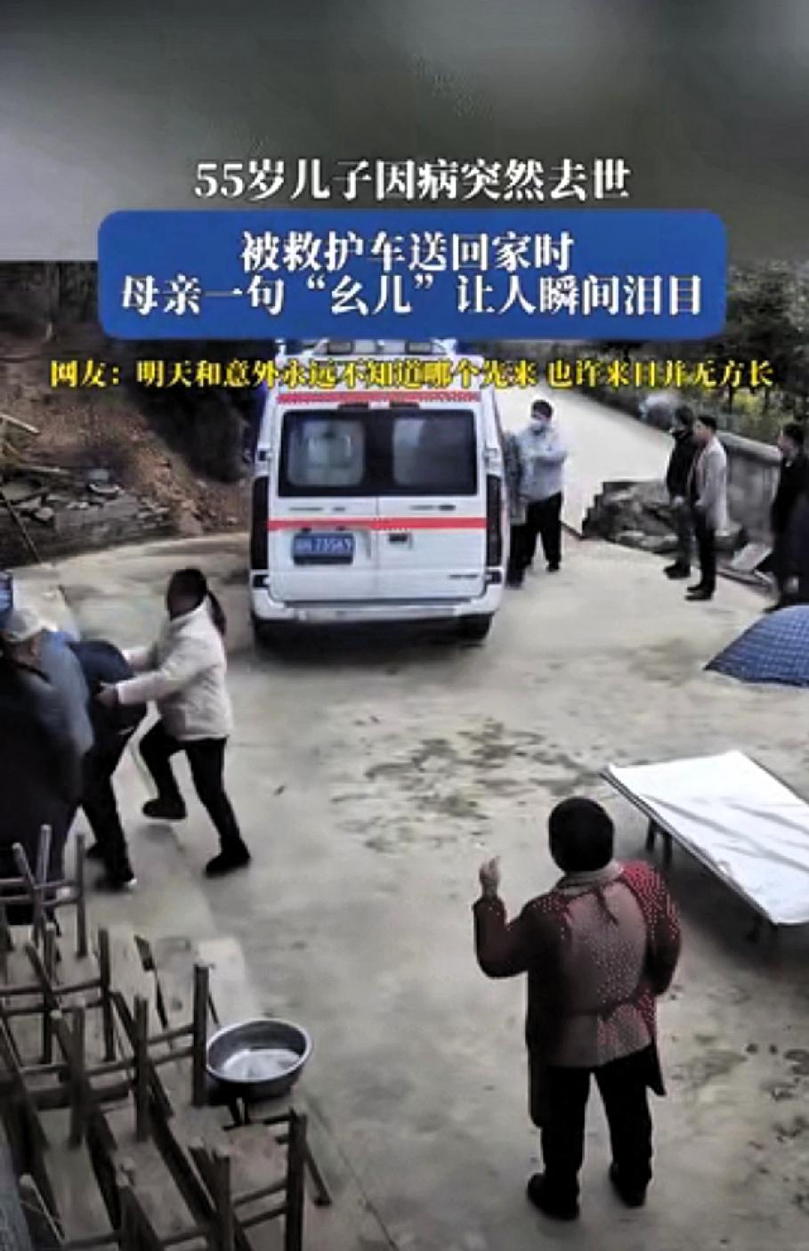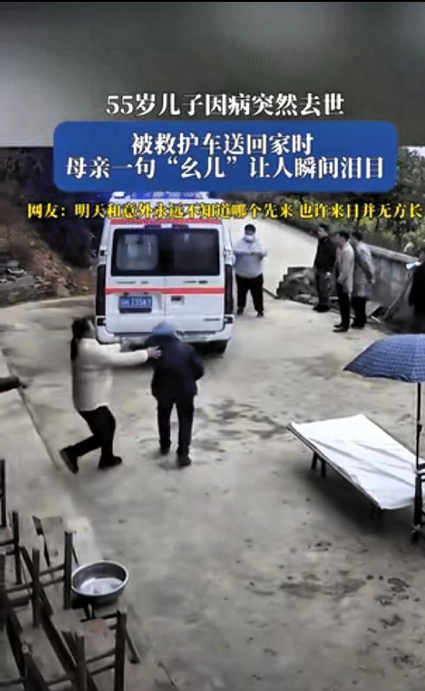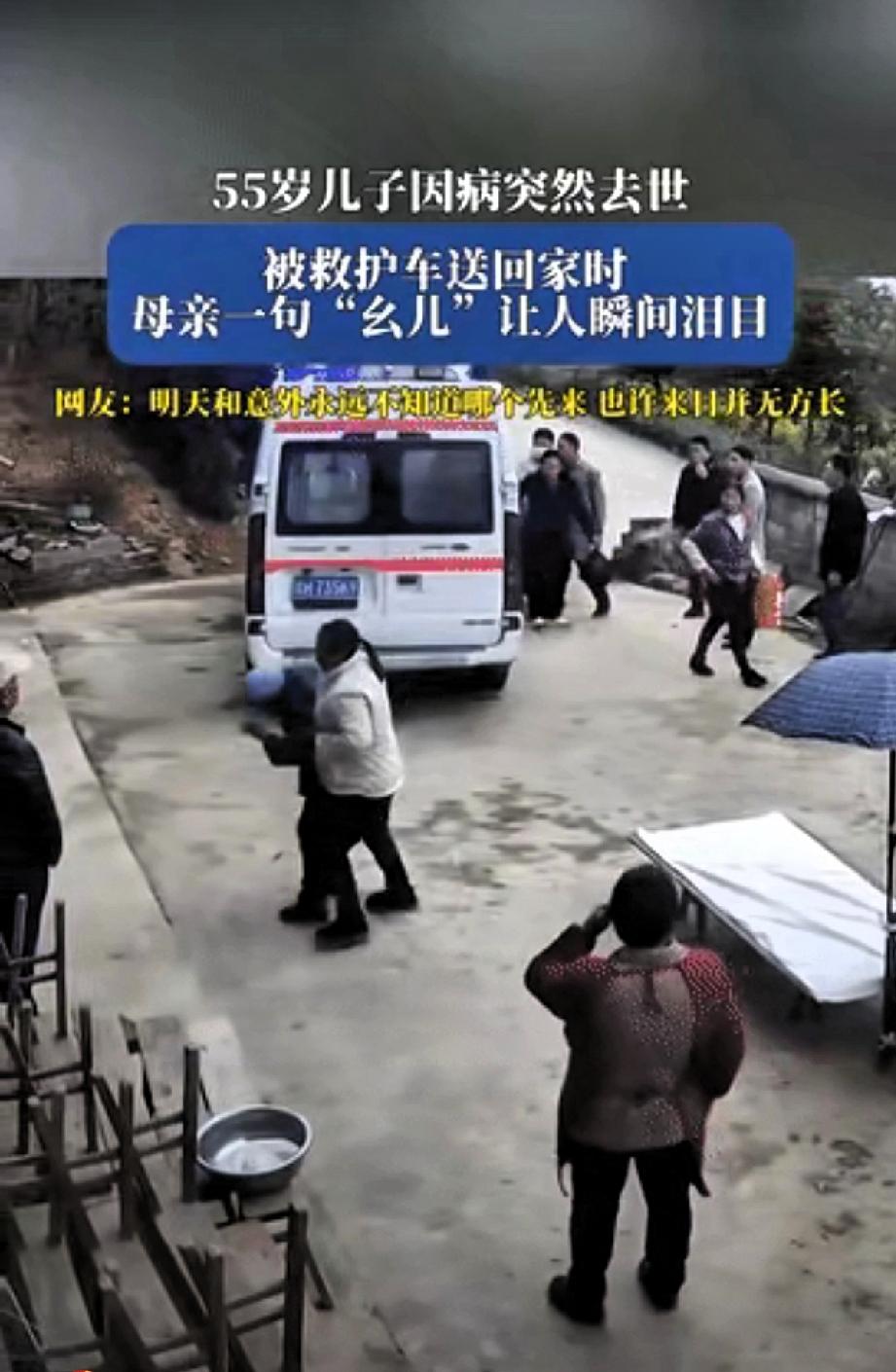 一句“幺儿,是娘啊”啊!瞬间让让所有人泪奔! 贵州一老人的55岁儿子因病突然去世,当儿子被救护车送回老家时,正在院里干活的老母亲得知后瞬间崩溃。老母亲奔向救护车说的的一句“幺儿,是娘啊”更是让人泪目!邻居们怕老人看到儿子遗体会更难过,一把拉老人,一旁的邻居都难过流下眼泪,白发人送黑发人这种痛是无法言表的,真的不知道明天和意外那个先来,好好珍惜眼前人!