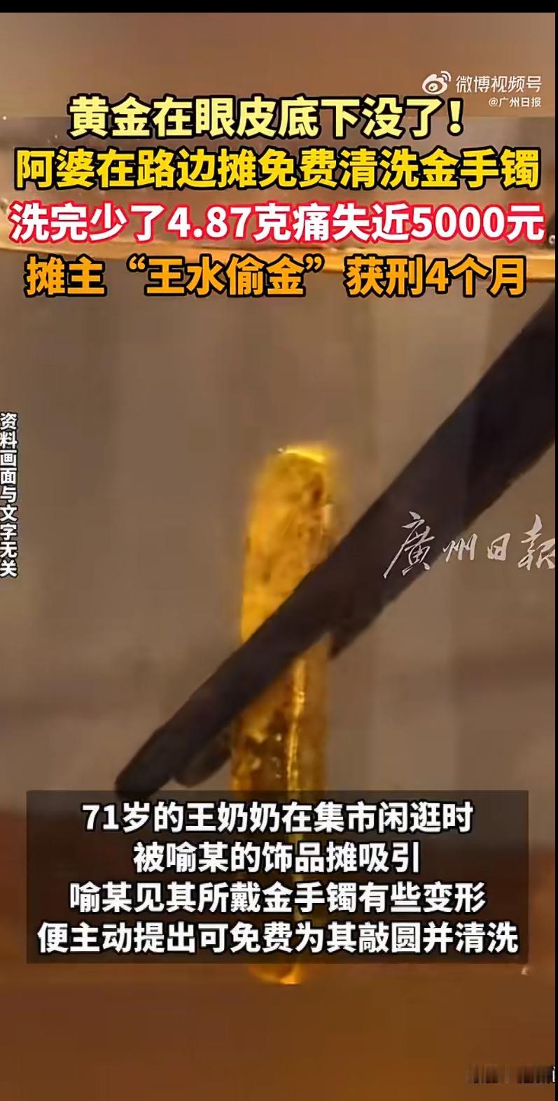 近日,一则关于老人体验免费洗金镯后重量减少的新闻引发热议。一位老人将金镯送至某商家参与“免费清洗”活动,取回时竟发现金镯重量少了4.87克,价值数千元。商家声称清洗过程正常,但老人坚称金镯被“偷金”。事件曝光后,许多网友直呼“细思极恐”,纷纷质疑免费服务背后的猫腻,更引发对珠宝行业诚信问题的关注。 事件的焦点在于金镯重量的异常减少。据老人描述,清洗前特意称重并记录,而商家提供的清洗后金镯重量明显变轻。面对质疑,商家解释称清洗会去除表面污垢导致重量变化,但无法提供具体损耗数据。双方各执一词,真相仍待权威检测。然而,这并非孤例——此前多地曾曝光“洗金偷金”乱象:部分不良商家利用超声波清洗、化学药剂等手段,暗中侵蚀黄金,消费者往往难以察觉。此类事件暴露出两个关键问题:一是部分商家缺乏诚信,借“免费”之名行谋利之实;二是消费者尤其是老年人,对黄金清洗的专业知识不足,易陷入陷阱。 这场风波折射出多个层面的警示。首先,免费服务常暗藏隐形消费。商家以“免费清洗”吸引顾客,实则通过克扣黄金、推销高价养护产品等方式获利,利用信息差欺骗消费者。其次,老年人是高危群体。他们往往对新型骗局缺乏认知,容易被“免费”“福利”等字眼吸引,轻信商家承诺。此外,行业监管存在漏洞。珠宝清洗缺乏统一标准,部分小作坊操作不透明,消费者维权举证困难,让不良商家有可乘之机。 面对此类陷阱,公众需提升防范意识:第一,警惕“天上掉馅饼”。面对免费服务,务必确认商家资质,了解服务细节,避免轻信口头承诺;第二,贵重物品留证据。清洗前拍照、称重并记录,保留凭证;第三,主动学习知识。了解黄金清洗的基本流程,识别偷金手段(如异常损耗、色泽变化等)。同时,监管部门应加强对珠宝清洗行业的规范,制定服务标准,严惩欺诈行为,保障消费者权益。 评论区想问问大家:你或家人是否遭遇过类似“免费陷阱”?面对商家套路,有哪些实用的避坑技巧?分享你的故事或经验,或许能帮助更多人避开消费“坑”。 这起事件不仅是一声警钟,更是一面镜子——它照出行业乱象,也映出社会对诚信的呼唤。当“免费”成为幌子,当信任被贪婪侵蚀,我们需要用智慧与行动守护每一份权益。希望每位消费者都能擦亮眼睛,让陷阱无所遁形,让诚信成为商业永恒的底色。 (案例来源:中国新闻周刊)