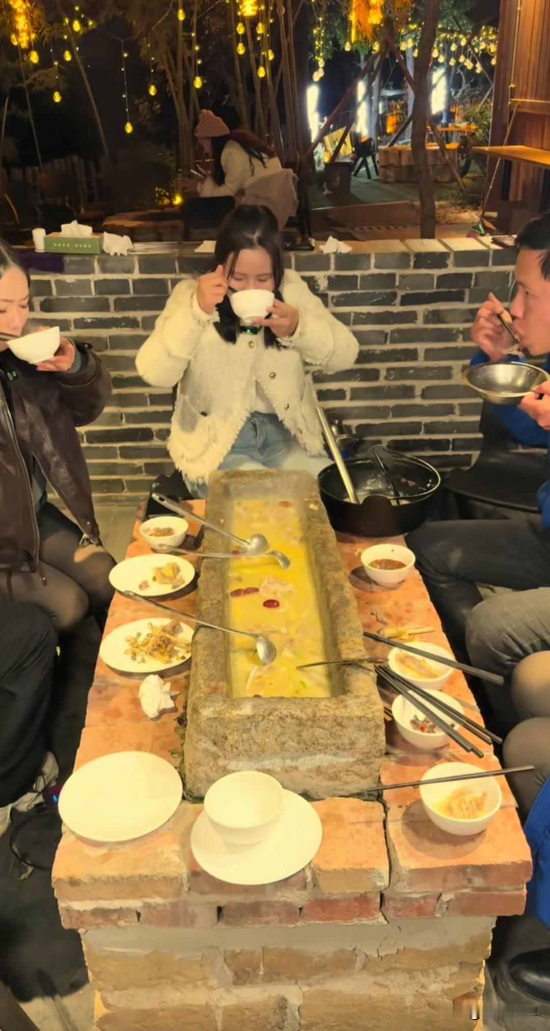 湖南永州一饭店上新“石槽火锅”,被网友调侃神似“猪食槽”。 这种火锅以传统农家石槽为造型容器,里面盛放汤底和食材,主要复古体验和视觉冲击。 饭店将农耕时代的“食槽”转化为餐饮器具,通过非常规容器营造新鲜感,也属于民俗文化的创意应用,契合近年“乡土怀旧”的消费趋势,满足消费者对社交话题性和打卡传播的需求。 面对网友们的调侃,老板回应称:“这个卫生和安全是没问题的,艺术来源生活,以前像我们吃的红薯、甜菜梗之类的都是猪吃的,现在人也在吃啊”。