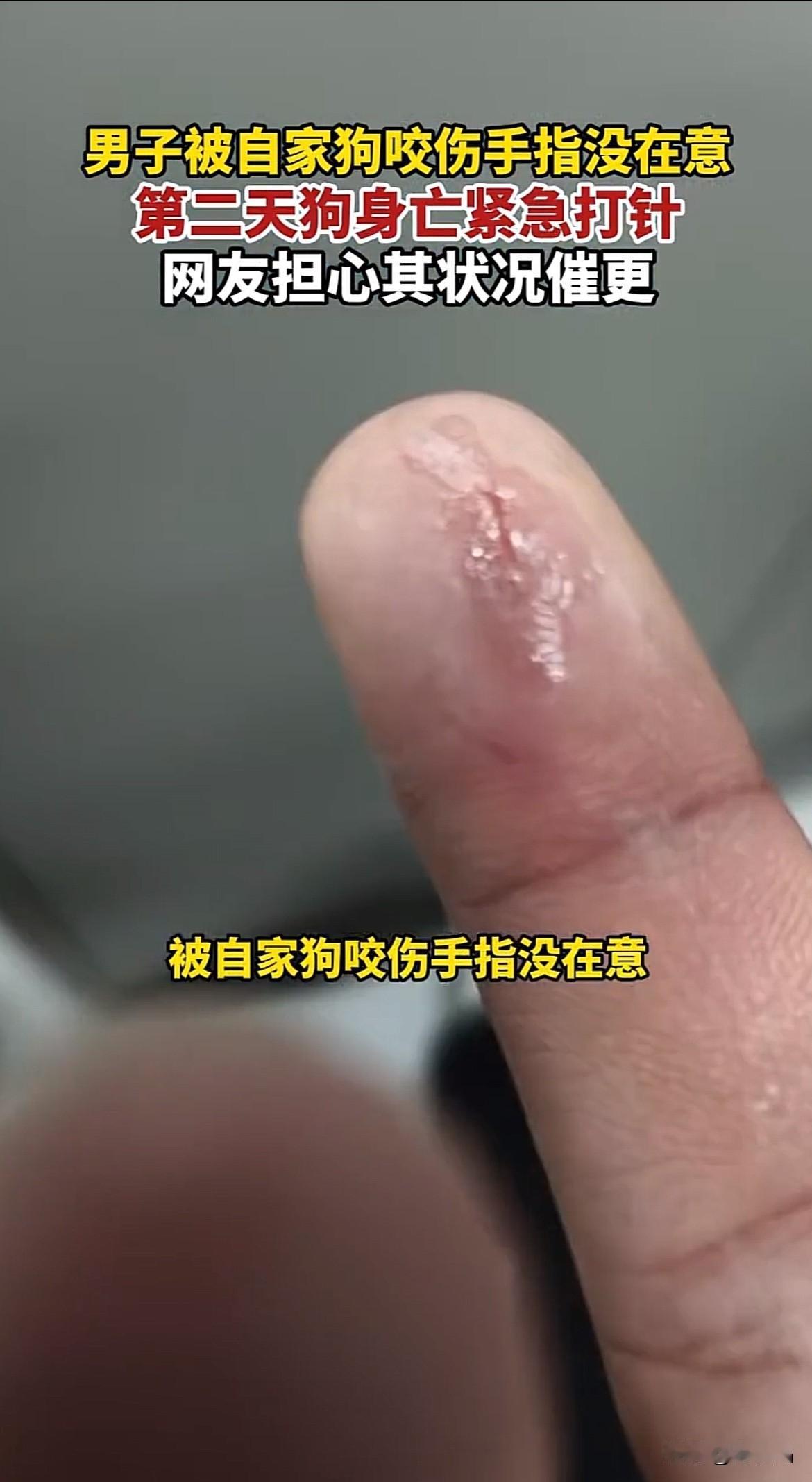 最担心的事还是发生了!河南,一男子被自家狗咬伤,本当小事不在意,不料狗第二天身亡,吓得男子匆忙去打狂犬疫苗。全网都在催更后续。 男子养这只狗已经大半年了,一直都很乖巧,可1月5日晚,男子下班到家后,发现狗狗有点异常。 狗狗窝在地上,没有往日的活蹦乱跳,也不主动跟主人互动,男子以为狗狗不开心想伸手安抚一下,不料狗狗突然反过头来,朝着主人的手就咬过去,小狗异常狂躁。 男子看着手指上的小伤口,觉得小事,认为过段时间就好了,晚上还约了好友喝酒吃饭,于是没处理伤口就出门了。 本想着第二天再带狗狗去找兽医看一下,可到了第二天下午,男子却发现狗狗已经死在家里,冷冰冰地躺在地上。 回想起狂犬病是没得治的,男子这才着急,紧急去医院打了狂犬疫苗、血清和免疫球蛋白,男子看着手上1600多的收费单,后面还有4针要打,陷入了绝望。 想想都后怕,男子被狗咬后,竟然没采取措施消毒、打疫苗。次日狗死了,才急着去医院接种狂犬疫苗、血清和免疫球蛋白。 狗狗突然异常,主人受牵连被咬,别再说“我家狗不咬人了”,因为狗狗狂躁起来,主人很难控制住,甚至也会被咬,更别说外面陌生人了。 这事也给我们敲醒了警钟,养狗一定要为狗接种疫苗,对自己好,也是对他人负责。若是养狗过程被狗咬伤了,一定要及时就医,接种狂犬疫苗和免疫球蛋白,别心存侥幸,因为狂犬病毒一经感染,是没药可救的。