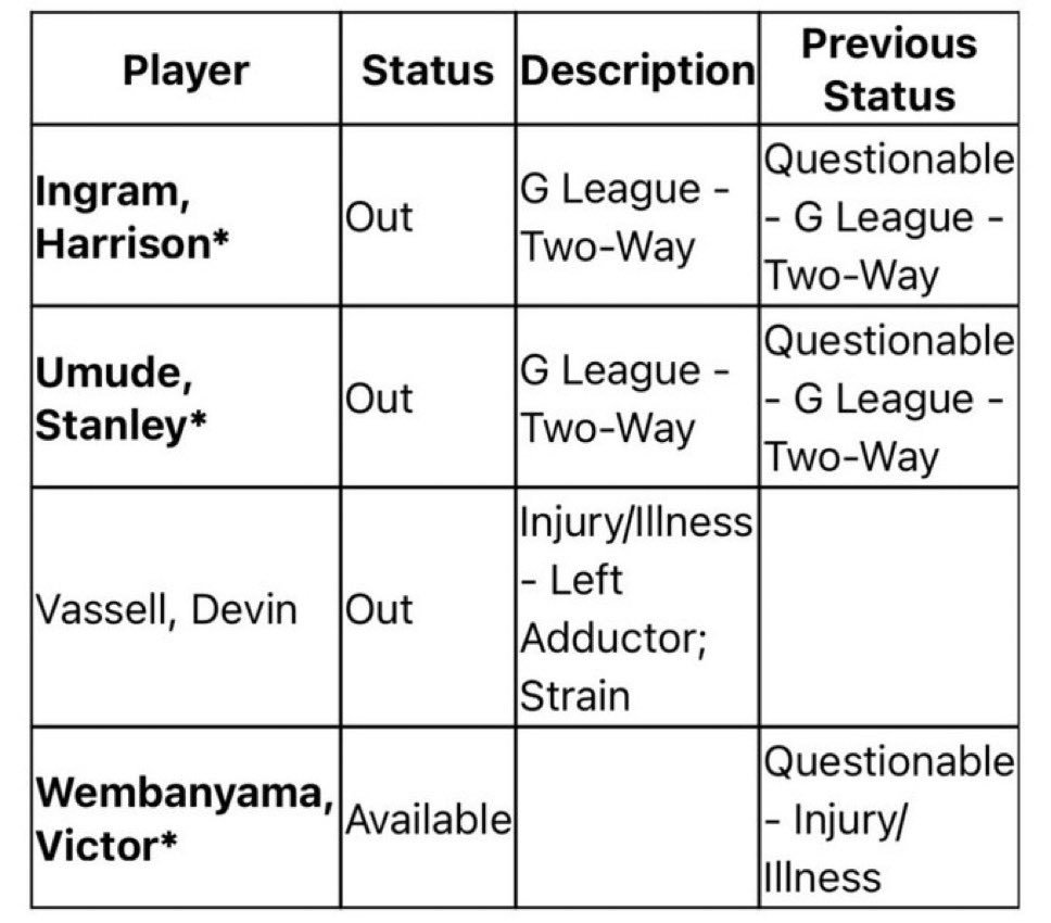 左膝骨挫伤的文班亚马从出战成疑升级为可以出战。