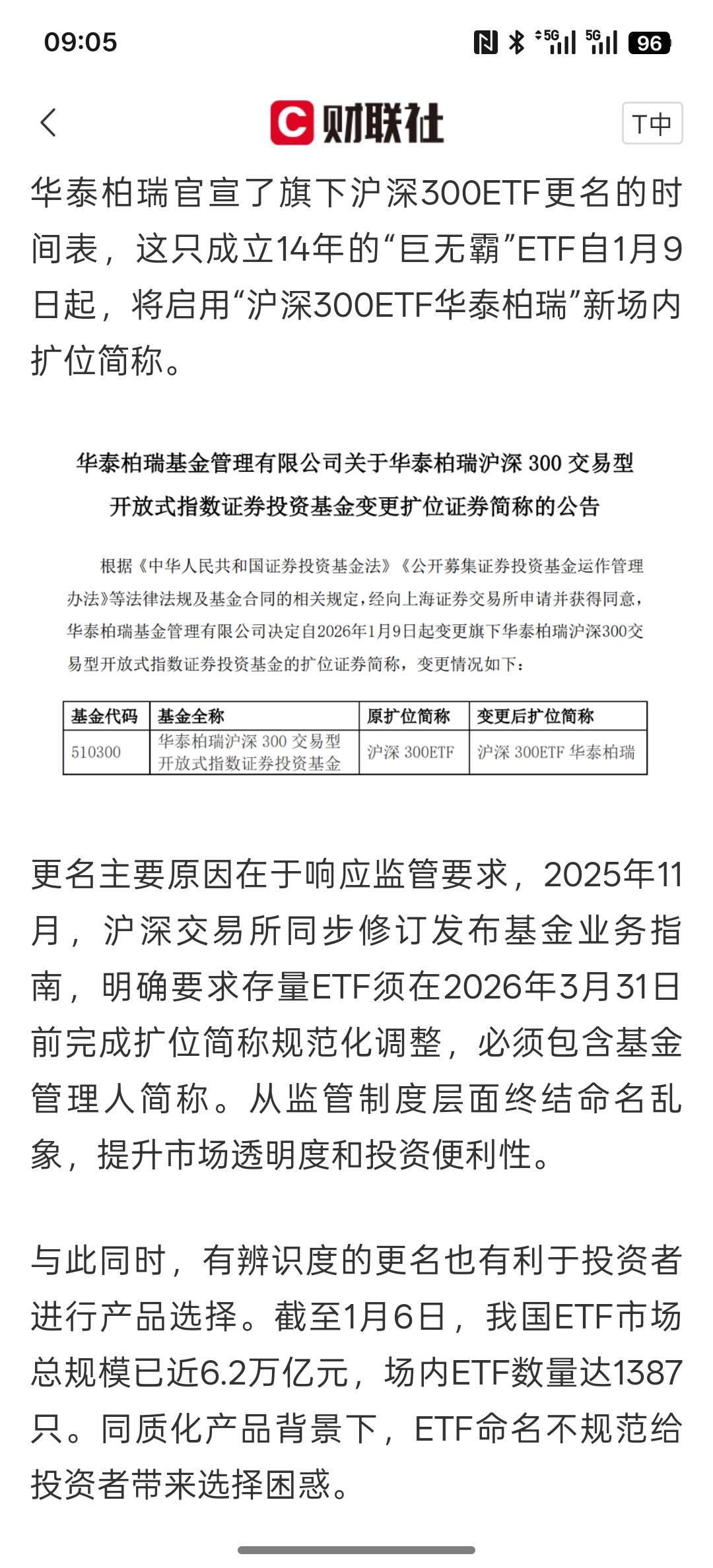 利好消息,中国规模最大ETF更名,6万亿ETF市场迎来命名全面规范化,这个主要还是利好主板指数,未来可以跟踪指数,按照这个标准化是可以实现的,未来,在基金指数方面会受到更多的资金追捧,进中国股市走向牛市,那么指数会持续的走慢牛行情,那很多投资者大看牛市就会购买指数基金,基本的ETF指数基金规模逐渐增长,证明很多投资者选择了投资基金行业! 当前,我国发展基金规模越来越大!对市场是起到了很强的支撑作用