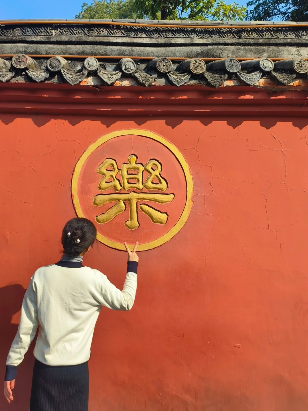 🌞可能因为今年暖冬的原因,文殊院的银杏还有尾巴。金色的银杏配上红色的院墙,在阳光下实在太美了。门口的红墙上有“幸”“福”“平”“乐”的金字,早已成为著名的网红打卡点。