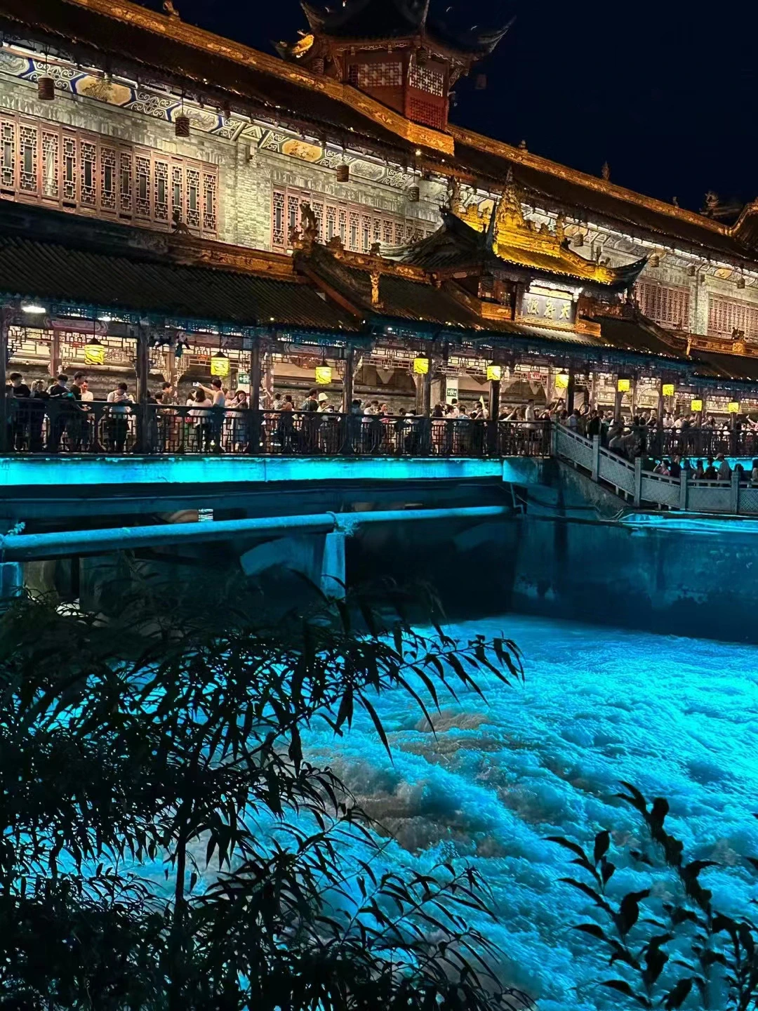 晚上:灌县古城各类小吃,等着7:30以后看蓝桥夜景:著名的蓝眼泪。人生建议,一定要看完蓝眼泪再走呀!很美~