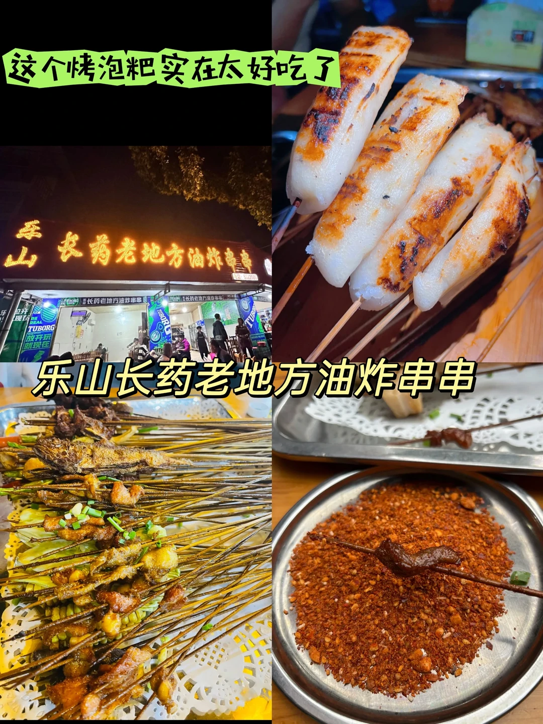 乐山老长药老地方油炸串串。我觉得比乐山所有油炸都好吃。牛肉一定要裹满辣椒面。📍名山东路