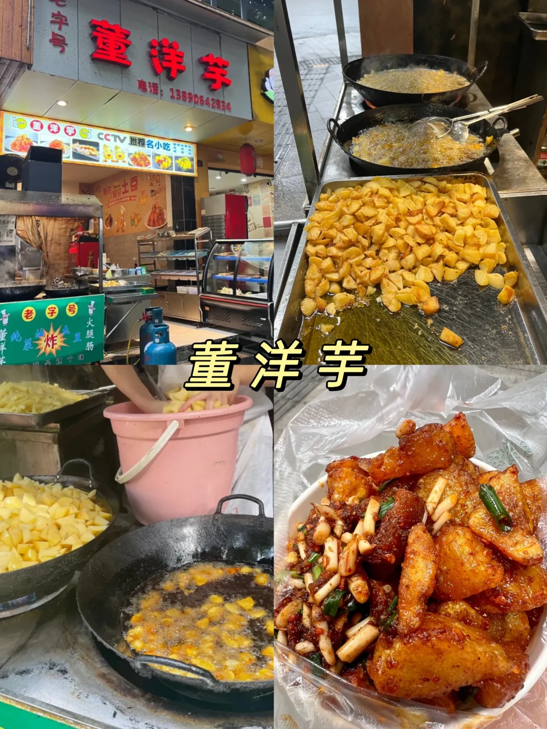 董洋芋。炸的酥脆的土豆和折耳根简直是灵魂伴侣。⚠️口味重的朋友记得喊老板加料。本地朋友告诉我,可能为了照顾更多外地人的口味,这家越做味越淡了。📍喷水池