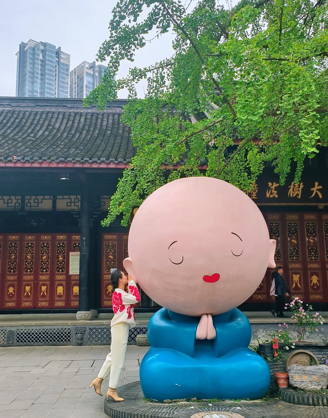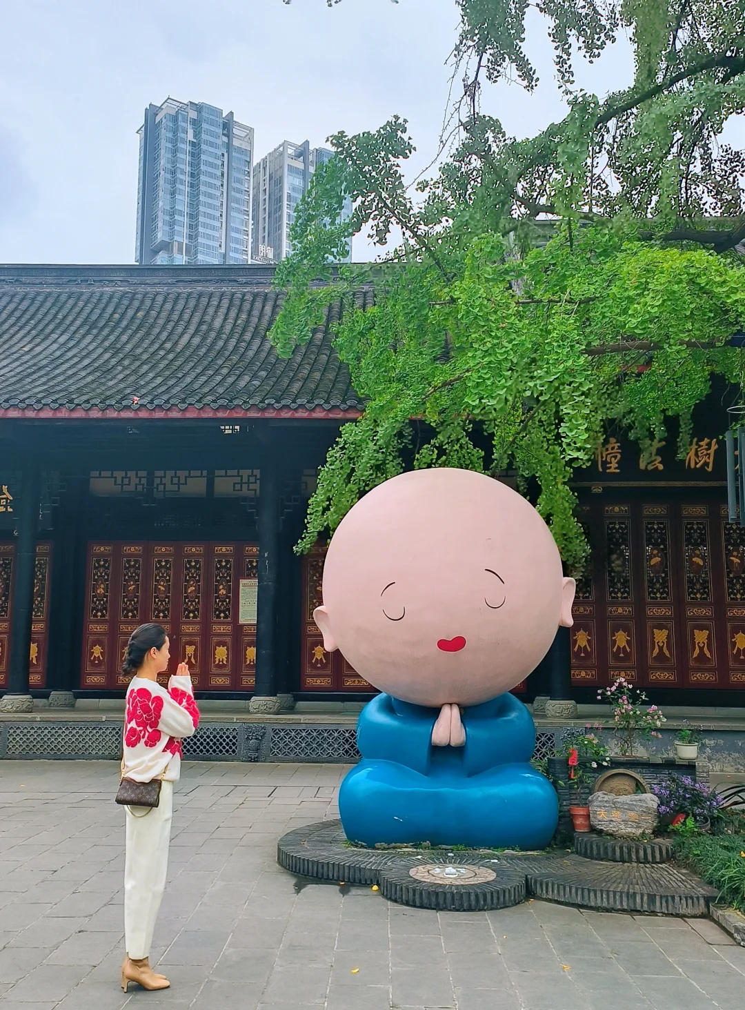 来太古里必去的大慈寺。这是一座距今1600多年的古刹,唐玄宗曾在此避难,玄奘法师曾在此受戒学律。寺庙内香火鼎盛,寺庙外游人如织,原来古与今,静与闹,可以如此完美结合。寺内有网红小沙弥“园一”(银杏叶黄的时候是他最美的时候),每周五六七可以吃寺院的斋饭,还有一方喝盖碗茶的茶馆。