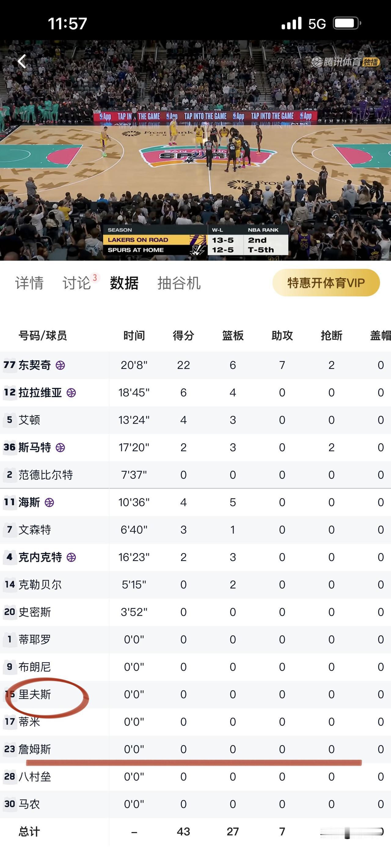 这么重要的比赛詹姆斯居然缺席! 万众期待的湖人战马刺, 球迷心中詹姆斯自我证明之战, 他居然休战了,哎! 这场比赛非常关键, 湖人输赢既决定西部2-5名排序, 更涉及近期美媒对湖人的评判, 是湖人“只能打弱队打不了强队”的翻身之战。 东契奇单核带队要是赢下比赛, 那么詹姆斯在媒体商业价值将无限走低。 真是让球迷失望呀! …