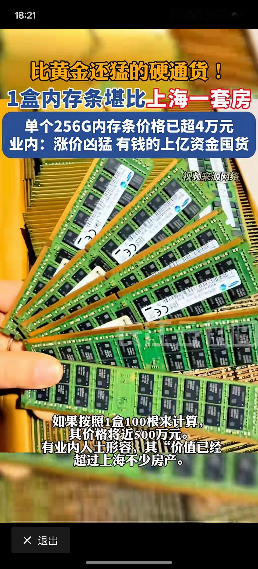 谁都想不到吧,内存条单价逼近5万元,一盒价格堪比上海一套房,这内存条也会有这么贵的一天!这内存条比黄金都还贵呢!一百根内存条就可以在上海买套房!赶紧去看一下自家有没有内存条,现在内存条越来越值钱了。全球因为AI人工智能的发展,内存条都不够用,存储芯片大量的需求!在手机电脑可能都会出现价格的上涨!内存条成了抢手货!不管是在哪个设备上面,不管是挖掘机还是各方面的工业机器,都需要内存条!在挖掘机的主板内存条方面,一套要20几万!很这种设备的内存条更贵!