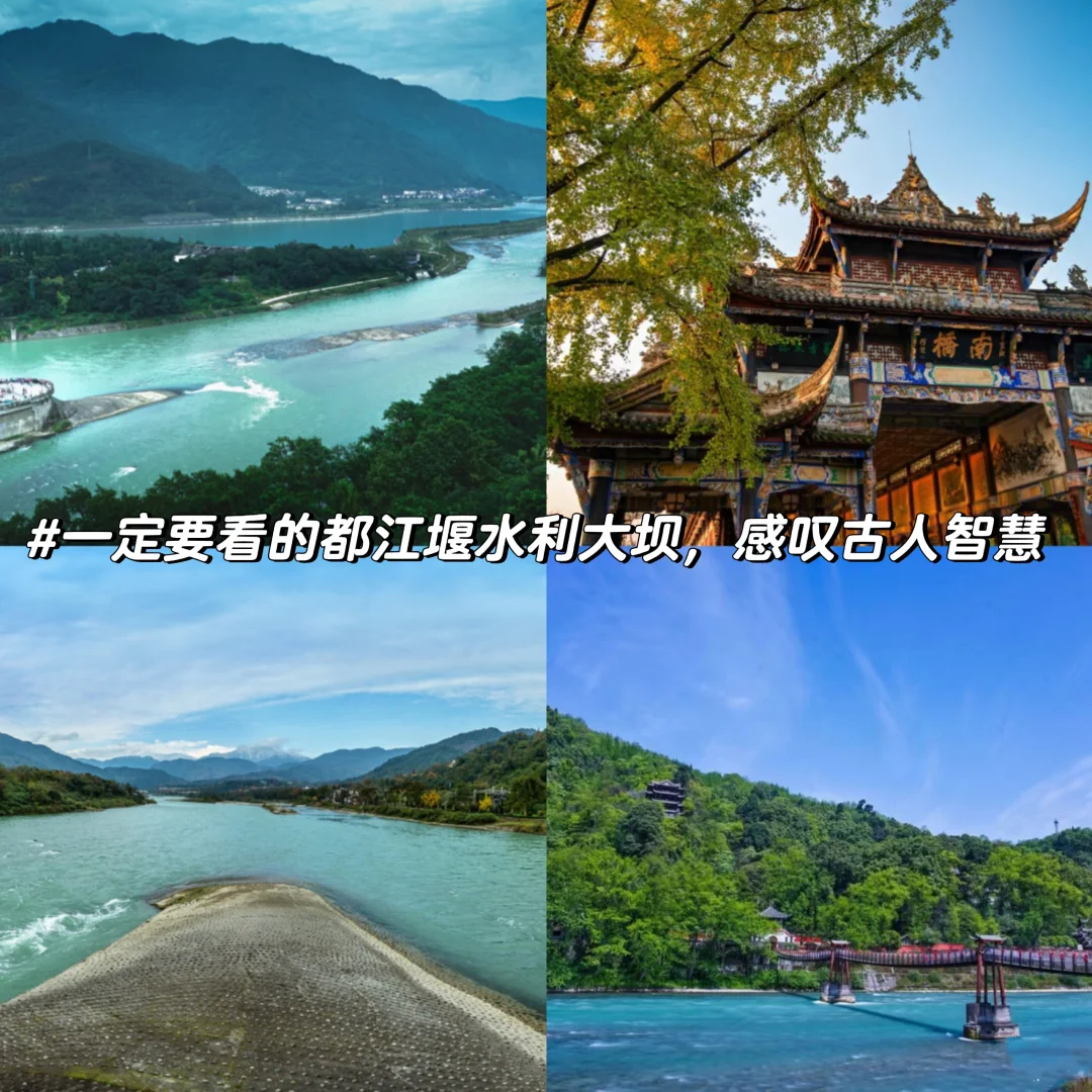 下午:都江堰。🎫💰80。感受震撼的千年水利工程,探究二八分沙原理的智慧。晚上可在灌县古城吃小吃,看完蓝眼泪返程。