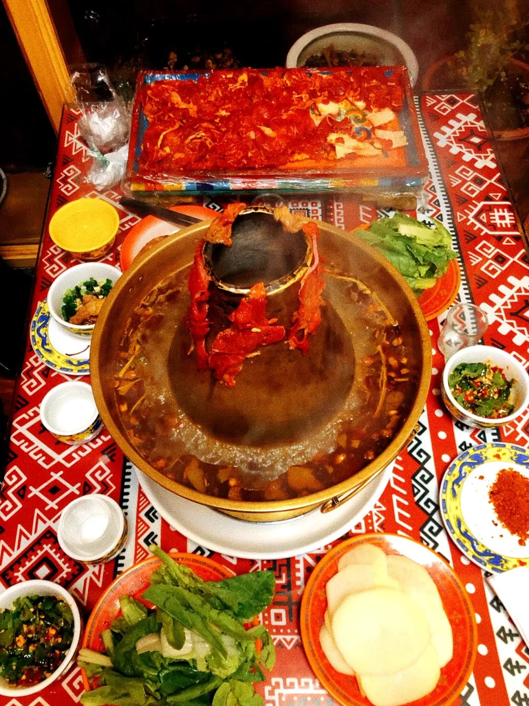 藏雅阁总店!就在沟口附近,火锅底料是藏式的,白水加香料熬制,牛肉很香,可涮可烤,都很好吃。分量很足,三个人团的双人餐牛肉都没有吃完。老板非常热情友好,送哈达送小礼物,整个饭吃得开开心心。