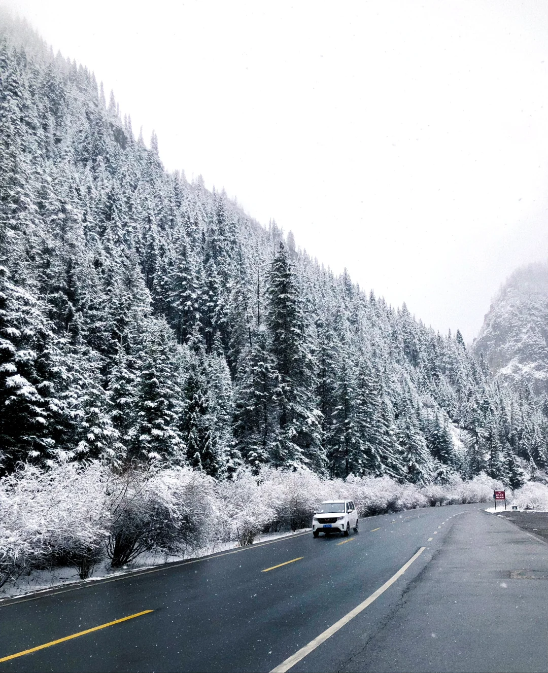 [二R]不用担心雪天路滑。一路都很好开。我们出沟那天遇到大雪,一路都看到扫雪车,非常安心。