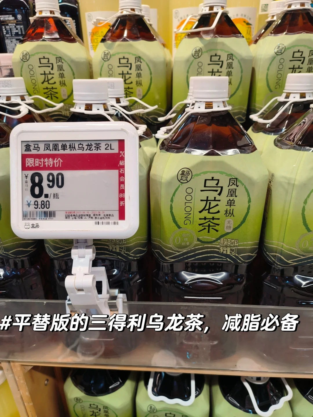 [一R]盒马凤凰单枞乌龙茶。💰9.8巨大一瓶,2L。现在三得利乌龙1.25L(还得💰9.5一瓶)经常断货,改喝盒马非常不错。解腻解渴,补水刮油。非常适合带出门。