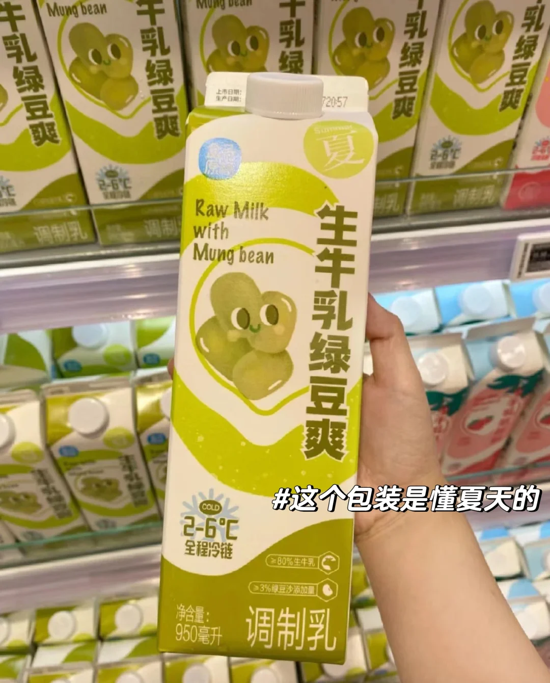 [二R]盒马调制乳:口味巨多,个人最喜欢绿豆味。包装就是懂夏天的。
