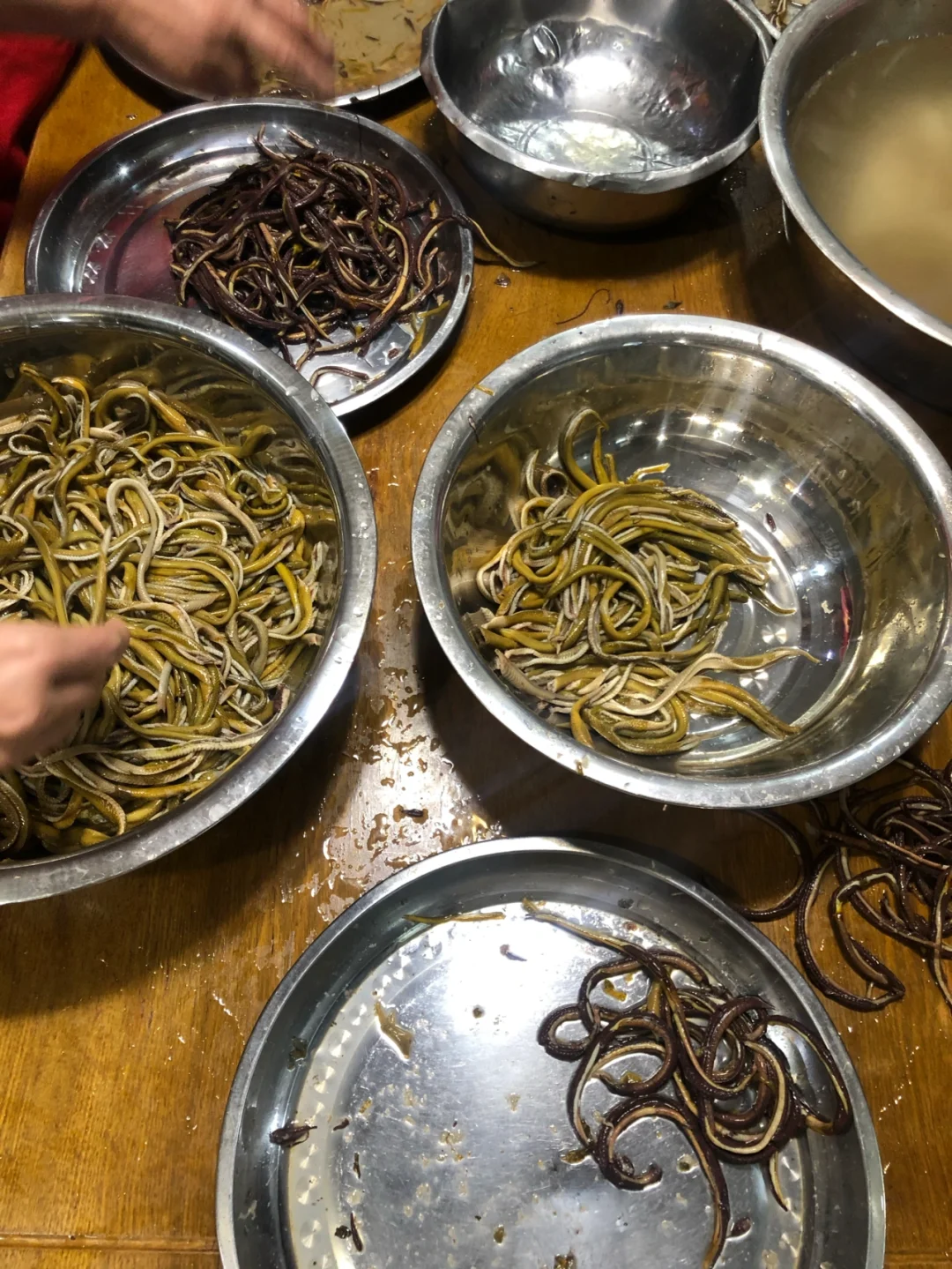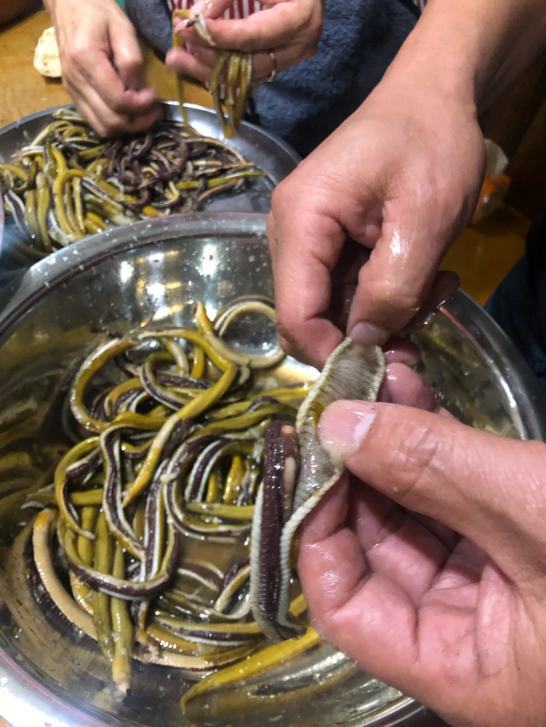 鳝丝的打理就在大厅,你可以看到手剥得干干净净的鳝丝,入口也一点腥味都没有~味道分特辣中辣和一般辣,还有酸菜不辣口味适合小朋友。送的油炸鳝鱼骨脆脆的,很香。