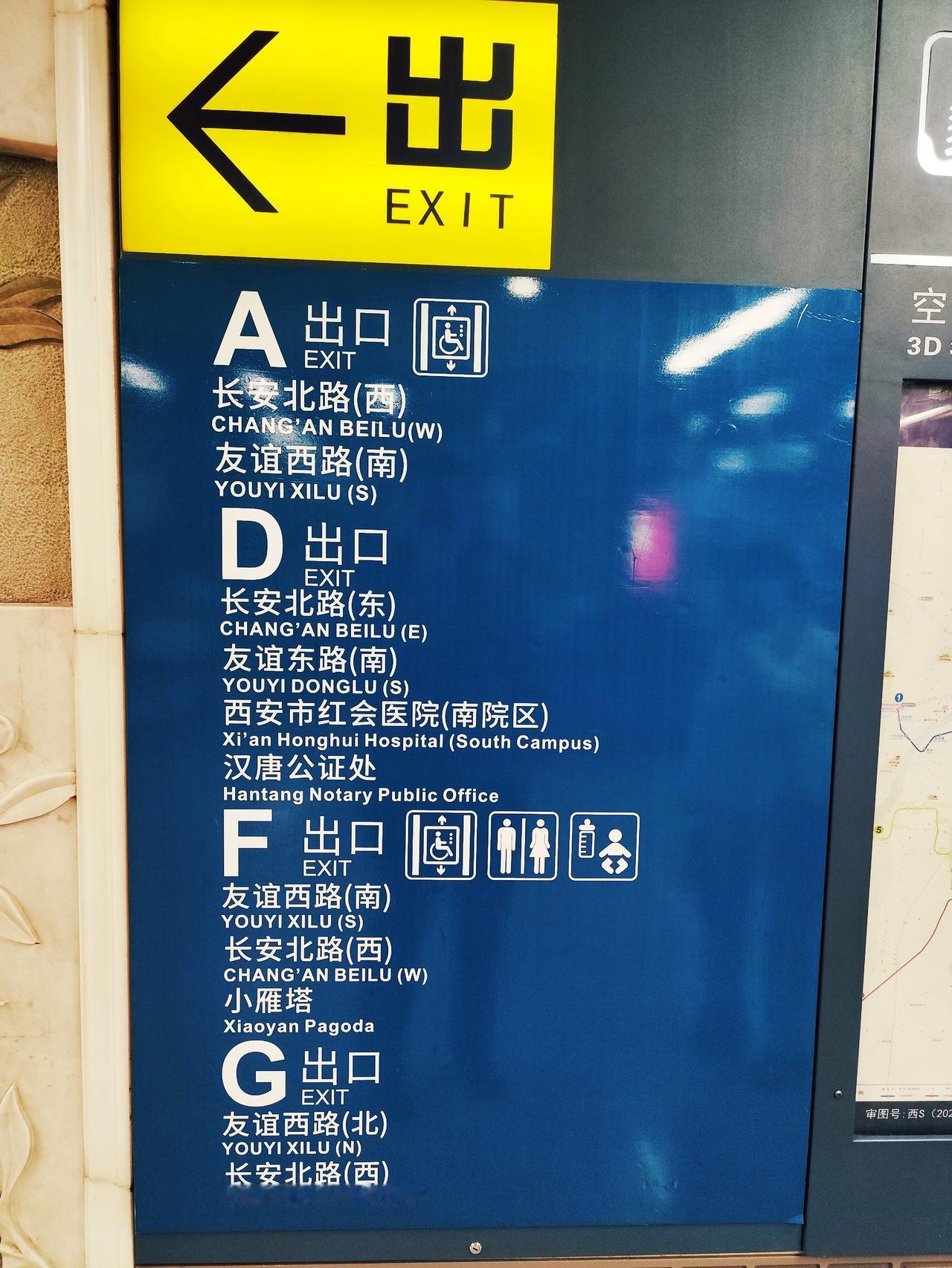 西安地铁的出站导航,为什么不写商场的名字?看看这些理由说的对吗?如果你是一位对西安地铁线路不是很熟悉的市民或游客,假如你要去中贸广场,出了闸机后该选择从哪个口出去?请看下图中的指示进行选择,选好后估算一下用了多久? 正确的答案只有一个,那就是G口。如果导航里标注中贸广场,你几乎不用犹豫直接就能出去。但是写了路南路西这些,不少人都要犹豫观望一阵子的,甚至也有可能走错。西安的很多商场都连接地铁,但是几乎所有的地铁出口指示里,都不会写商场的名字。 这到底是是什么原因呢?根据AI的分析,地铁出站指引本质上是在“公共性、准确性、空间有限性和商业中立性”之间找平衡。道路和大型地理区域是最稳定的参照物,不易因商家更替而过时。 同时避免了为商业场所“打广告”的争议,同时还能概括一个方向上的所有目的地,适合引导前往未知区域的乘客。大家有没有走错地铁口的经历呢?不妨分享一下。