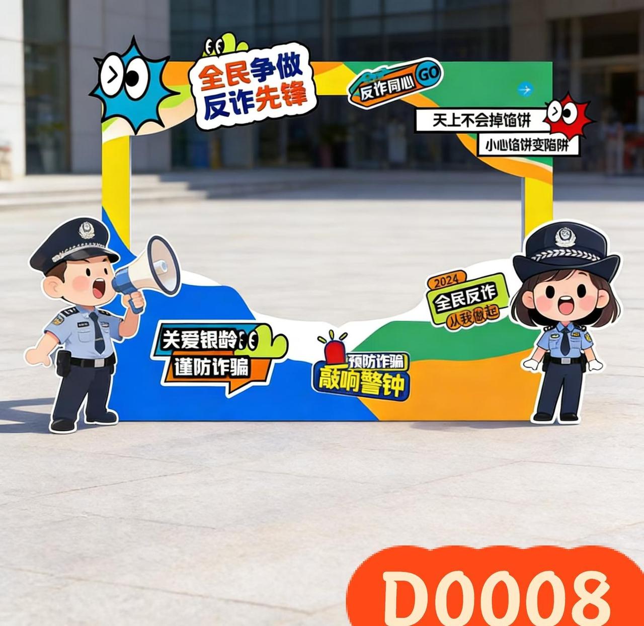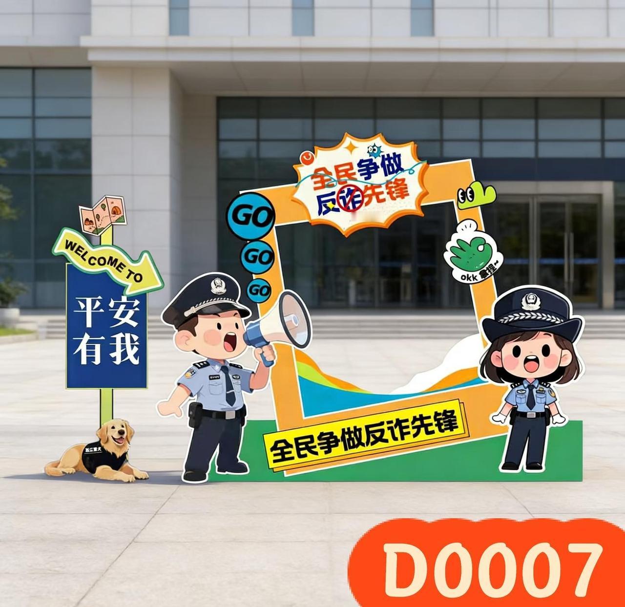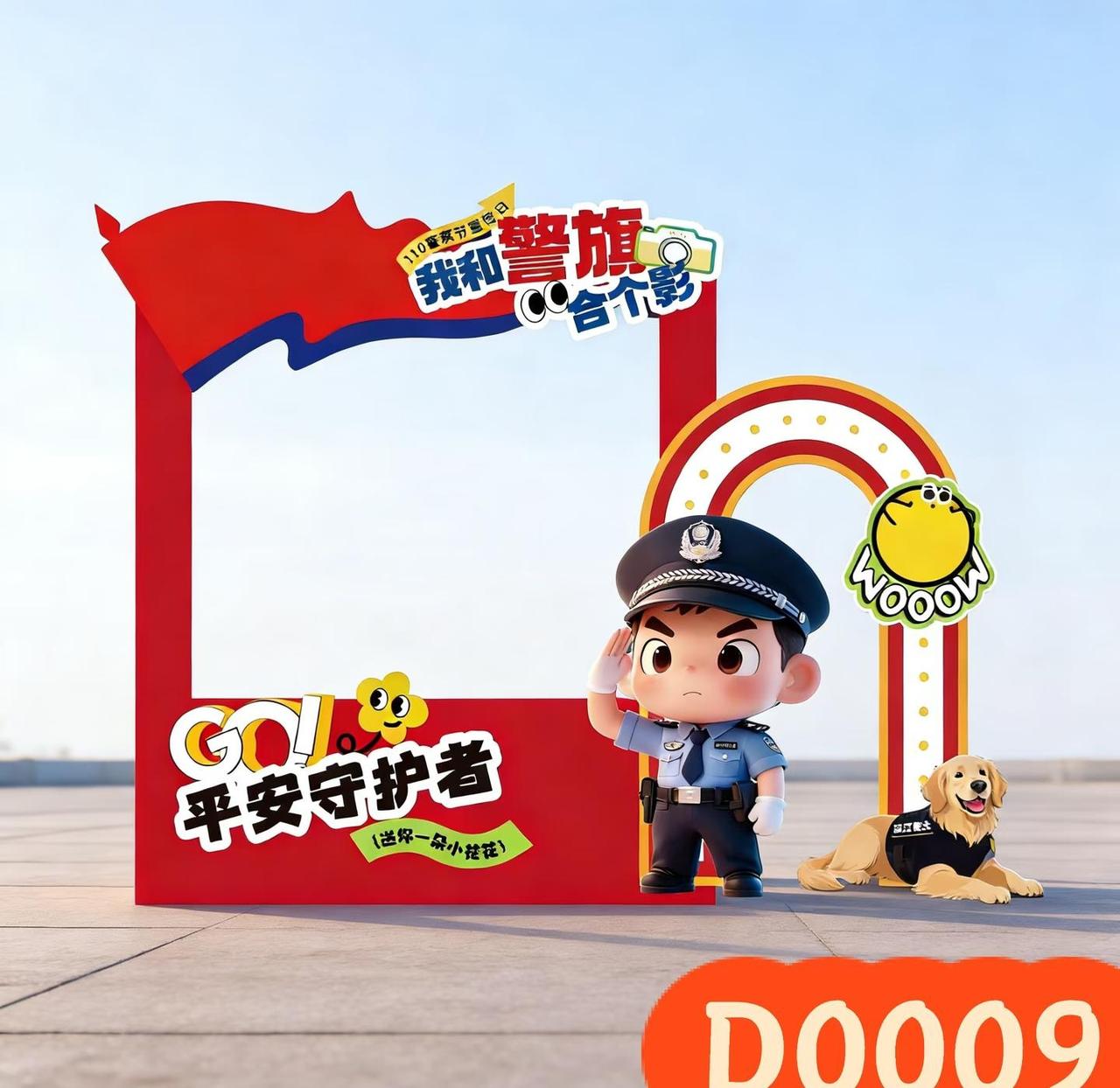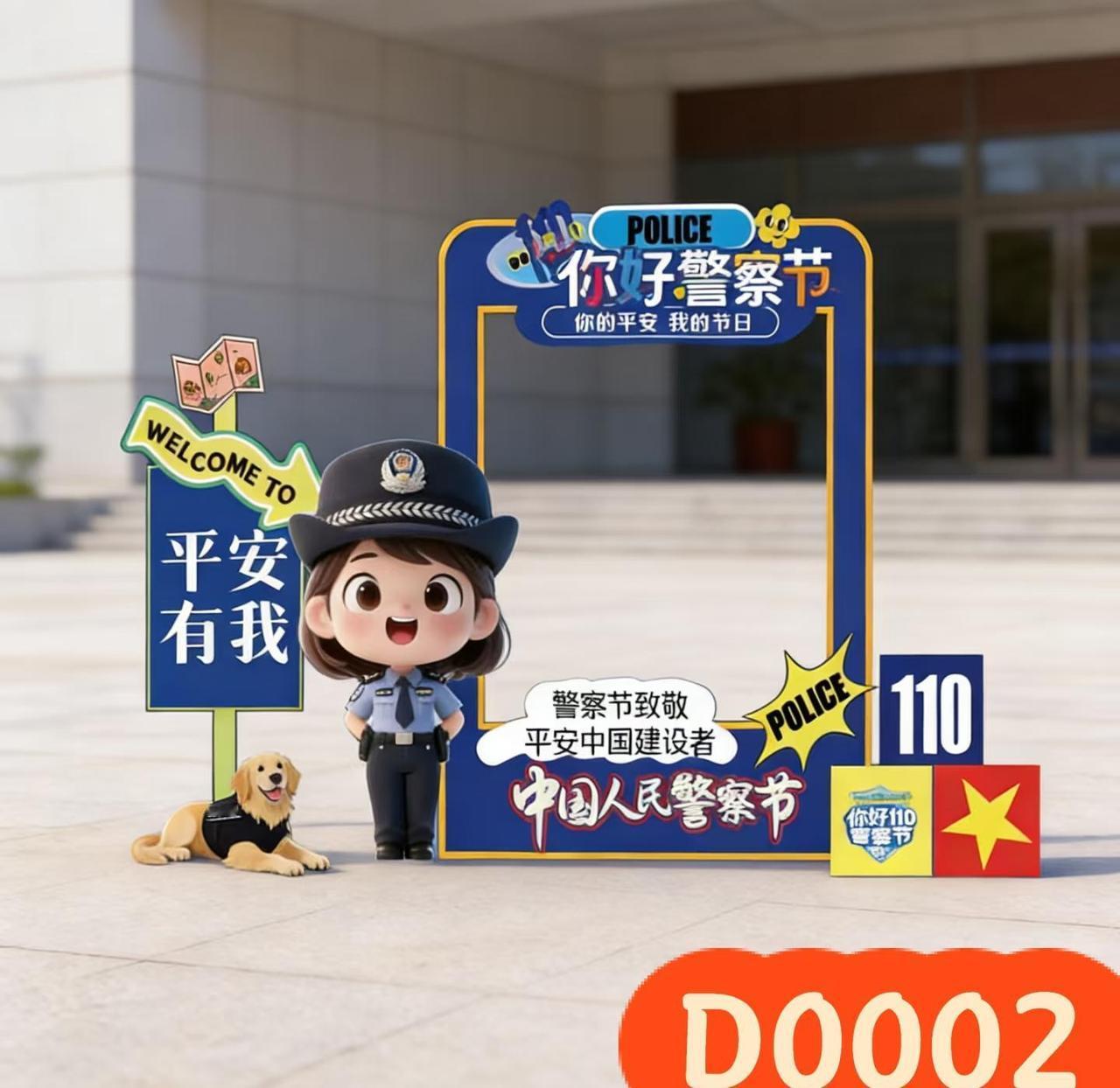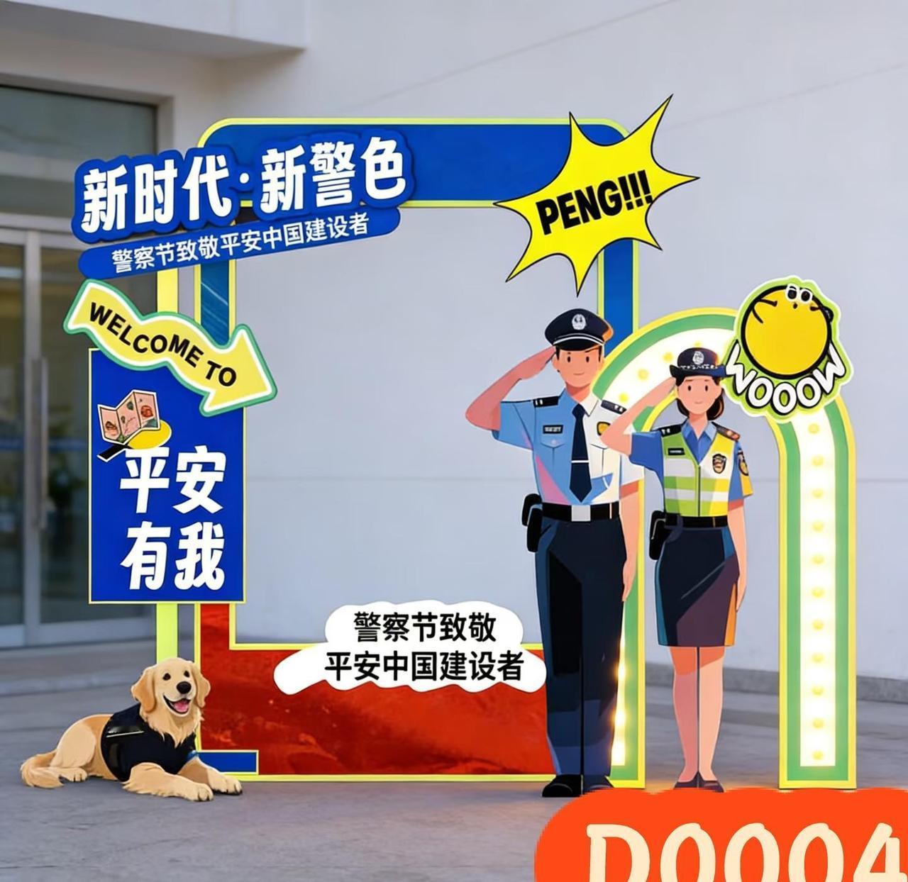 ✨警察节氛围感打卡框,一键出片!✨ 谁说警察节只能严肃又正经? 这次我们把“安全感”直接搬进了打卡框里! 从反诈先锋到平安守护者,每一个设计都超有梗。 • 🔹 反诈主题:萌趣的卡通警察形象,配上“天上不会掉馅饼”的标语,拍照还能涨知识! • 🔹 节日主题:红蓝配色超亮眼,警旗镂空设计,站进去就是平安代言人! • 🔹 可爱主题:Q版女警和警犬元素,打破距离感,软萌又有范儿。 无论是放在派出所门口、商场活动,还是单位内部,都是吸睛利器! 背景干净不抢镜,随便一拍都是大片,发朋友圈绝对被问爆链接! 警察节 110宣传日 反诈宣传 平安守护 美陈打卡 拍照框 活动策划 你守护城市我守护你