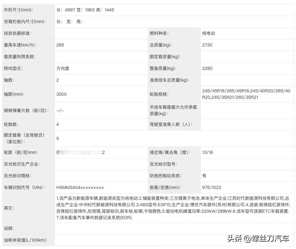 车型尺寸方面,新车长宽高分别为4997/1963/1445mm,轴距为3000mm,与现款车型保持一致。此次申报图申报了单电机版和双电机版车型,单电机版最大功率235千瓦,最高车速240km/h;双电机版前电机220千瓦,后电机288千瓦,最高车速265km/h。电池方面,仍然来自于弗迪磷酸铁锂电池和宁德时代三元锂电池。