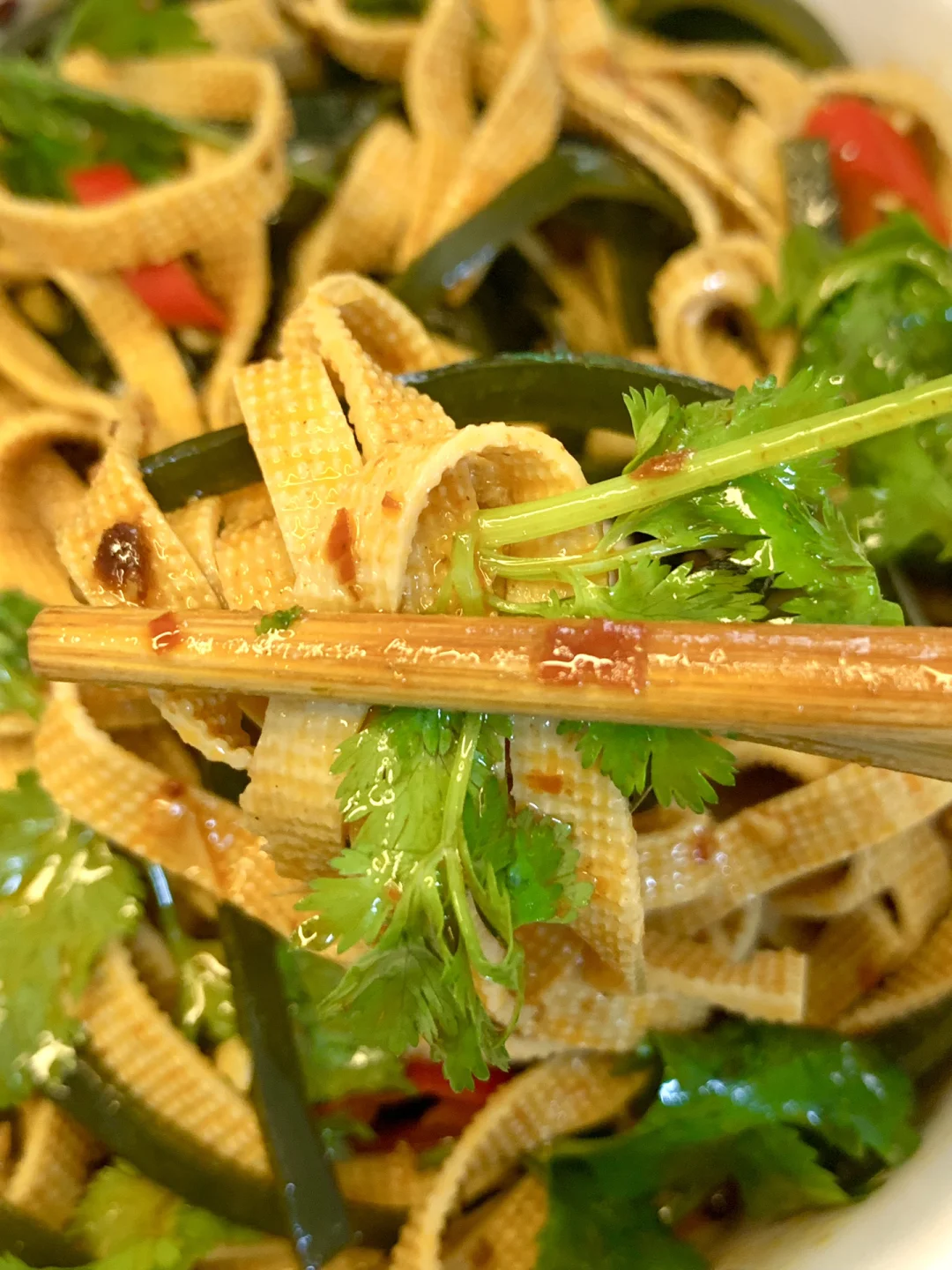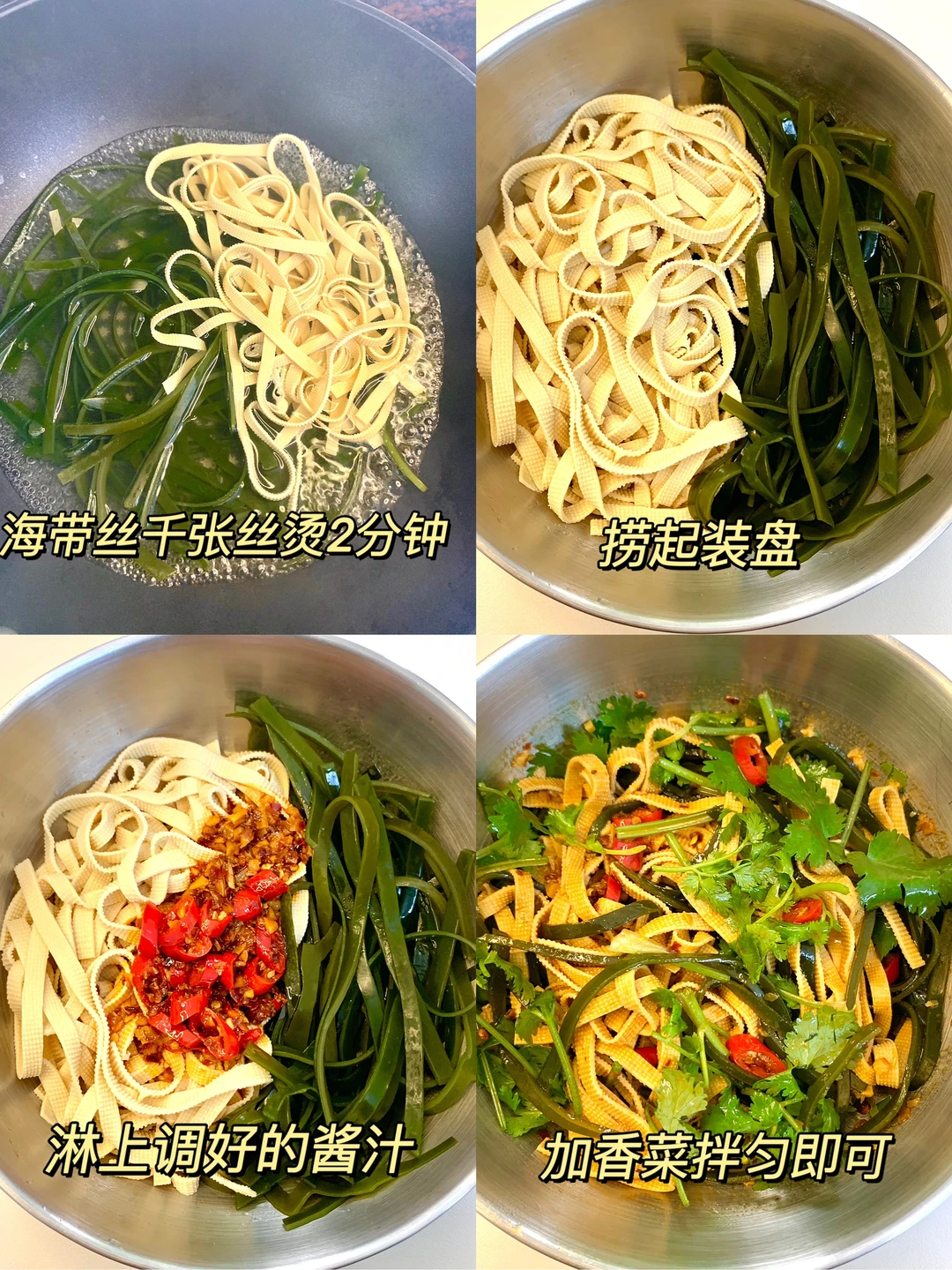 🔥🔥今天给大家分享一道 「凉拌海带千张丝」 低脂低卡,清爽可口! 饱腹感也很不错,好吃不胖! 主要是很简单!几分钟就可以搞定!! 当作晩餐也没问题哦!姐妹们欢迎交作业[飞吻R][飞吻R] [彩虹R]食材:海带 千张 香菜 [开箱R]做法:如图所示👆🏻