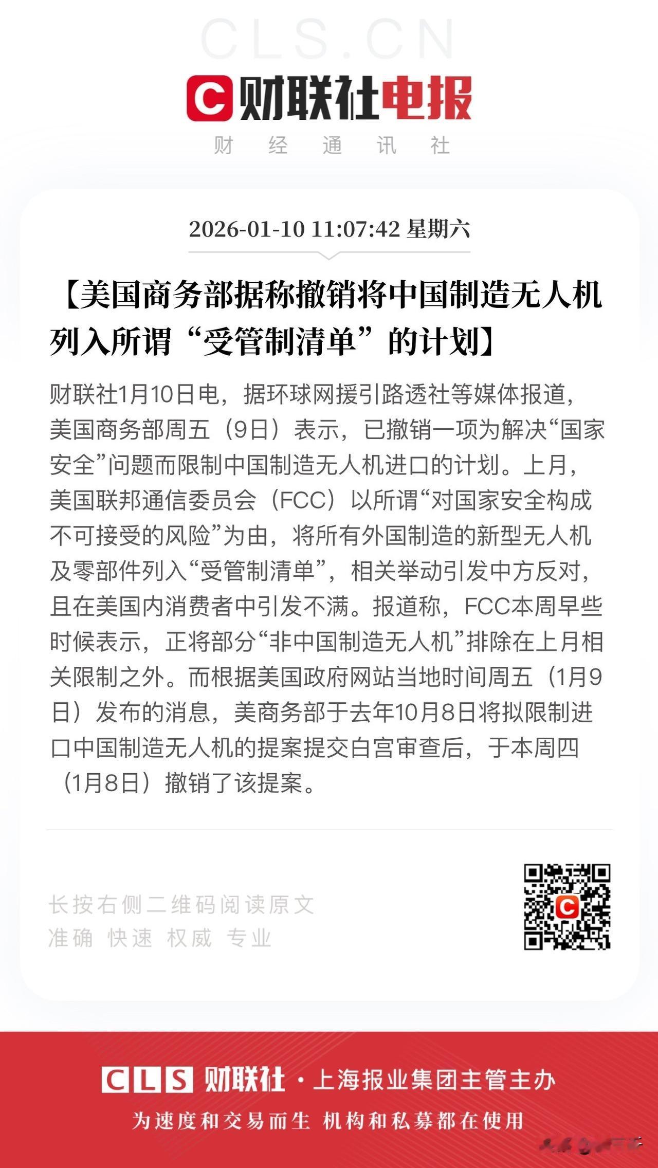美国制裁大疆又一次虎头蛇尾失败了! 美国商务部据称撤销将中国制造无人机列入所谓“受管制清单”的计划。 当你强大到对手主动低头时, 画面太美不敢想… 可惜大疆不上市, 大疆和华为是两头科技现金奶牛, 假如它们是上市公司, 应该是可以考虑和美股苹果公司一样, 按头部消费股给估值的。 比如巅峰时期A股长期能给30-35倍估值的, 片仔癀和贵州茅台; 又比如巅峰时期的LVMH、爱马仕等。 过增长高峰期后, 又可以参照长江电力、中国神华! …