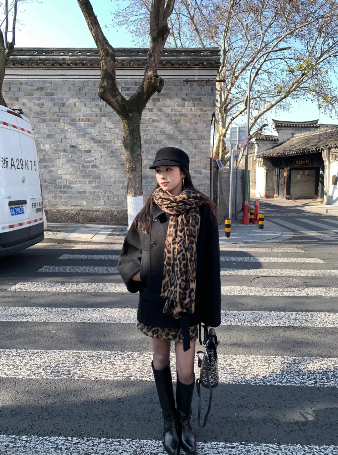 初雪穿搭 日常生活里的快乐瞬间 每日穿搭 我的日常 大衣 黑色大衣 秋冬氛围感 豹纹穿搭 春日特派员