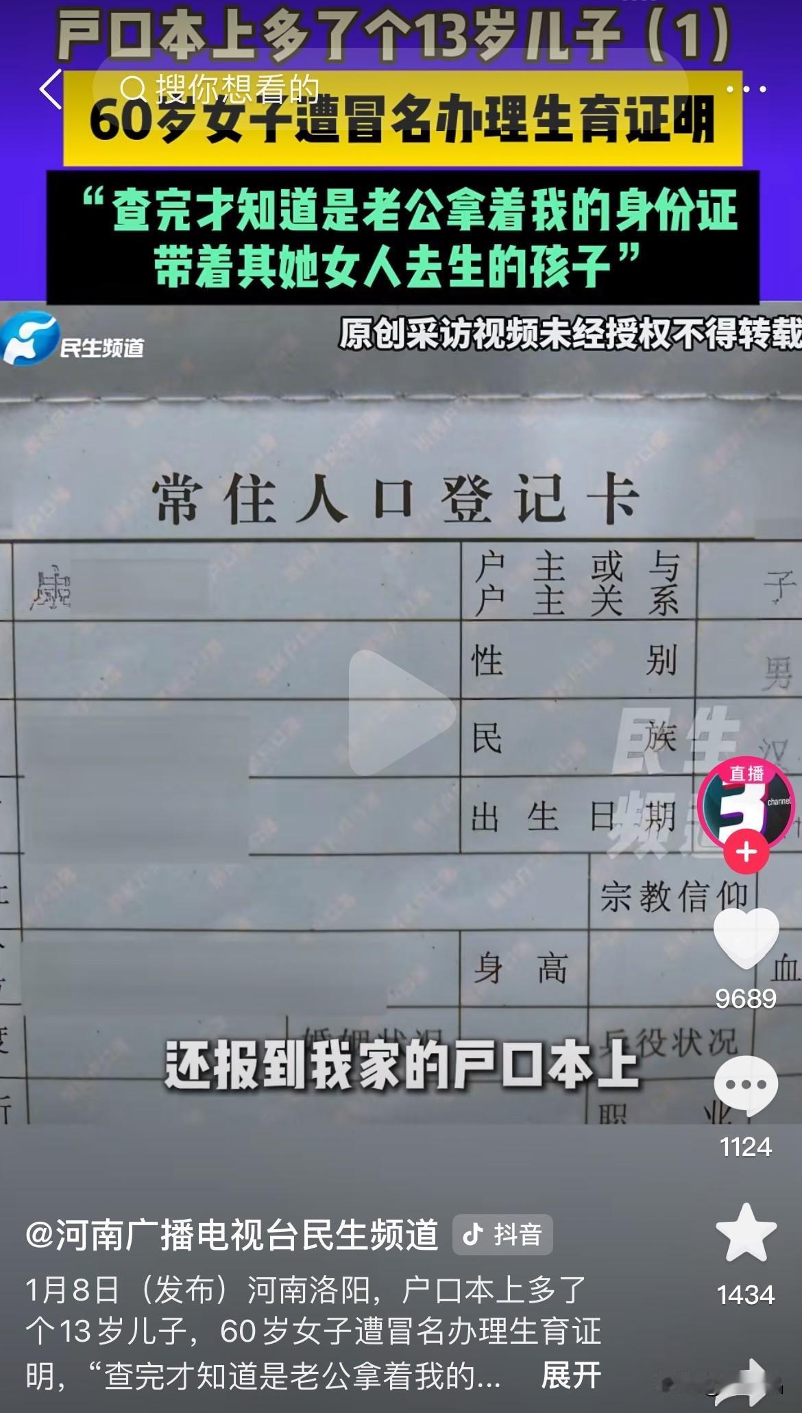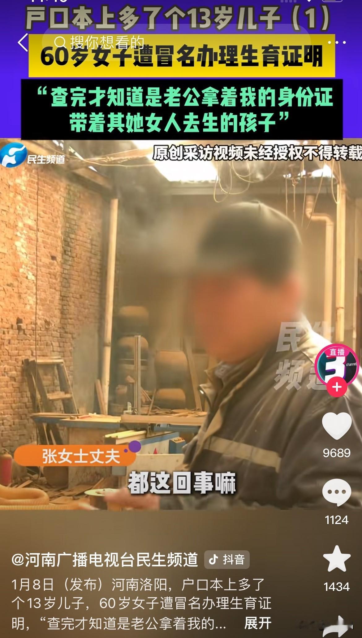 河南洛阳,60岁女子去补办户口本,发现名下多了一名13岁儿子,一查竟是老公和小三所生,老公偷拿自己身份证去落户,让女子寒心的是、老公理直气壮:就多个娃嘛,都这回事。 女子和丈夫结婚35年,育有一儿两女,最小的孩子都31岁了,而自己早在1995年做了结扎手术,不可能有13岁的儿子。 女子去医院一查,原来是2012年老公带着小三来生孩子,填的是女子的身份信息,出生证和落户时都偷拿女子身份证,偷偷办下的。医院方承认当时审核没那么严格,同意承担责任和修改出生证信息。 而这位私生子现在还被老公养在外面,老公承认是和一个买保险的女销售生的,现在已经和小三断了联系。 让女子寒心的是老公的态度,老公没有一丝歉意,认为就只是多个娃,又没怎么样,直言女子接受不了就离婚,老公轻松的口气就是在谈论一件微不足道的小事。 丈夫对女子怒喊:“你离啊,为什么不离?” 女子气愤不已,自己勤俭持家,为他生儿育女,为这个家操碎了心,换来的是老公的出轨,之前察觉老公外面有人,苦于没证据,为了孩子也就忍气吞声,没想到老公这么过分,竟然还明目张胆把私生子落户到自己名下,简直欺人太甚,决定告他重婚,目前案件已受理。 婚姻是神圣的,且受法律保护的,丈夫违背婚姻法和践踏道德底线,公然婚内出轨生子,事后还如此嚣张。支持女子为自己发声,让婚姻背叛者得到该有的惩罚!