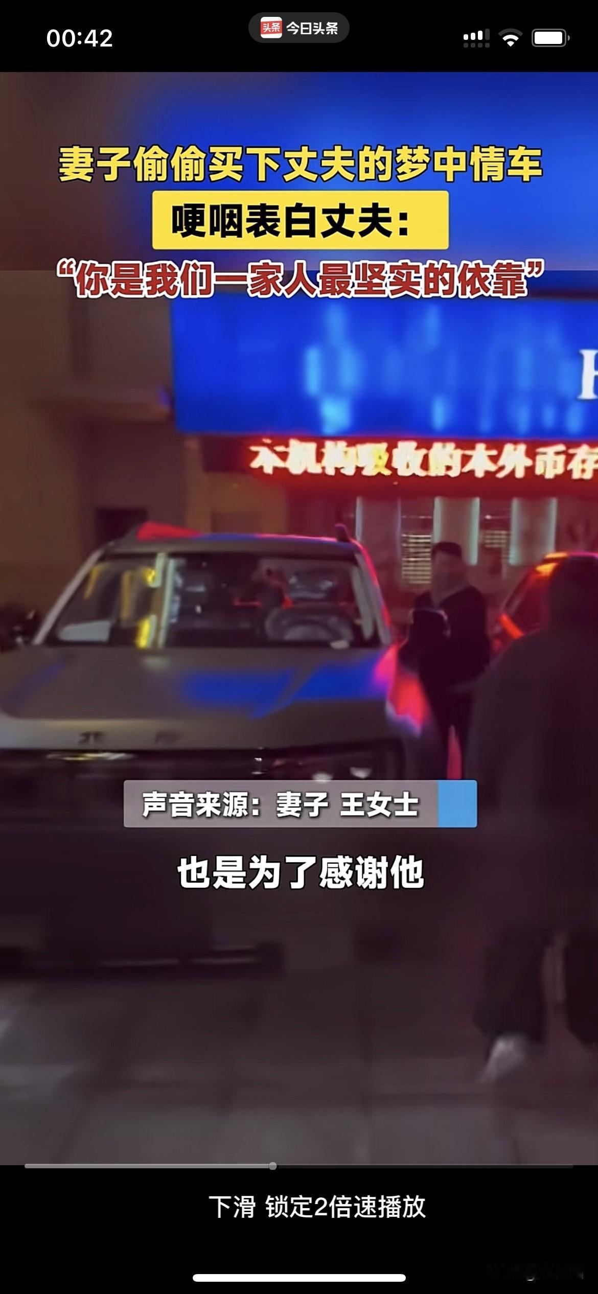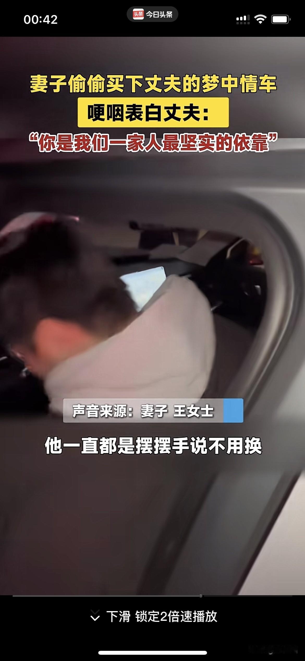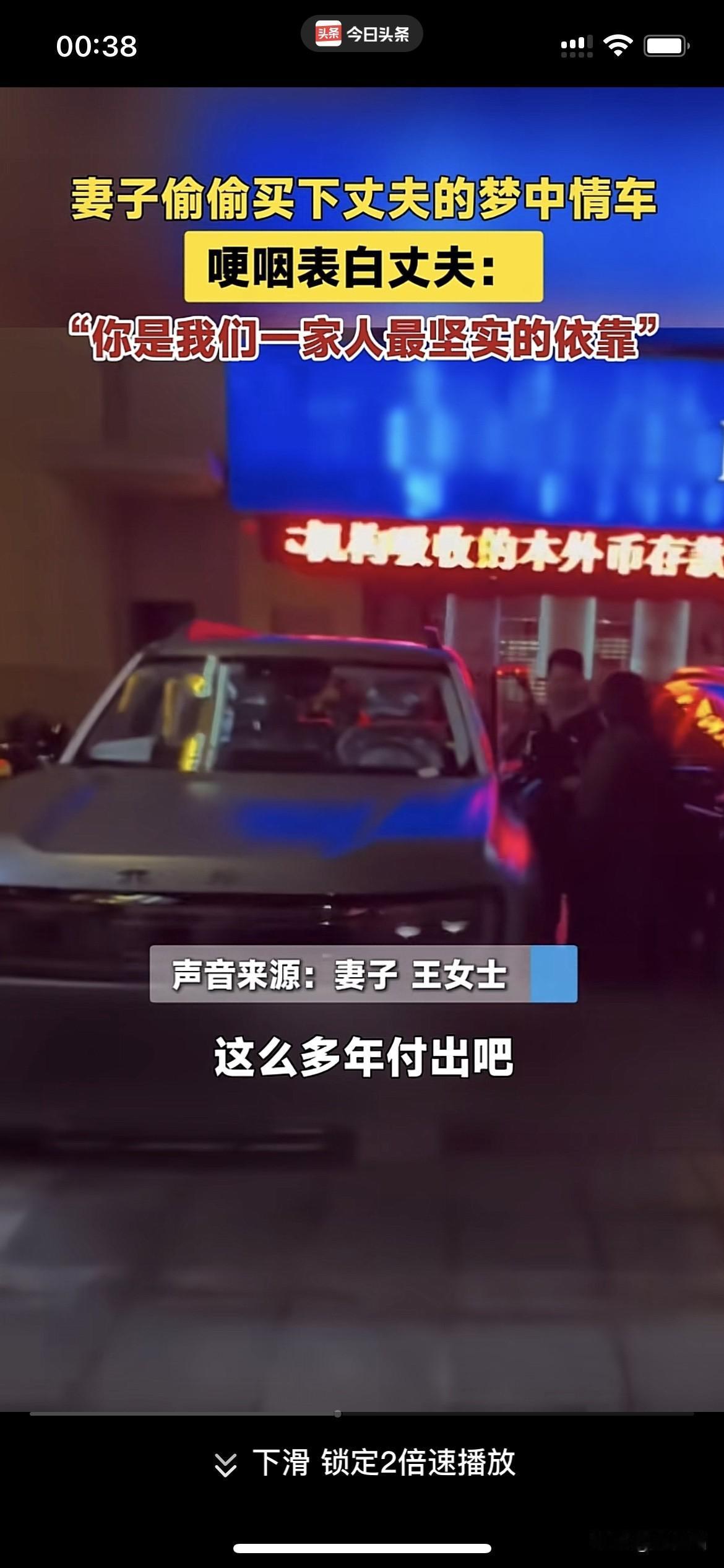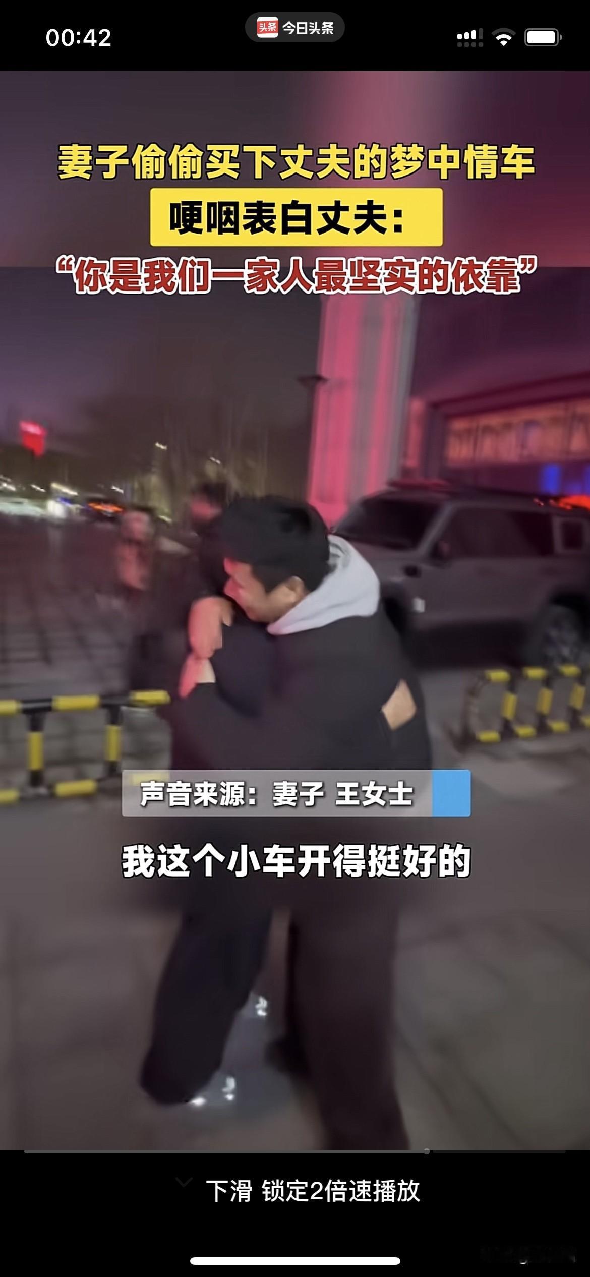 有妻如此,夫复何求!山东德州,一妻子打听老公喜欢什么配置的车,新年礼物竟然直接送了老公一辆梦中情车,霸气表白老公:我爱你。 丈夫的车开了10年了,妻子想让他换一辆车,丈夫总是摆手拒绝,说:“不换不换,我那小车开得挺好。” 妻子明白丈夫是为了省钱,为了把钱留给她和孩子用,平时丈夫就是对她们很大方,自己总是很节俭,换车这大支出,老公说什么也不肯。 丈夫这些年的付出,妻子看在眼里,暖在心里。为了感谢丈夫,决定给他一个惊喜。 妻子提前一个月打听丈夫喜欢什么配置的车,敲定后直接霸气买车,带老公去提车。 老公看到这特殊的新年礼物,围着车走了几圈,爱不释手地摸了又摸,激动上车体验,随后下车紧紧抱住妻子,竟被妻子的惊喜感动到落泪。 男儿有泪不轻弹,丈夫感动的不只是收到梦中情车这份礼物,更多的是妻子对他的爱和体贴,是妻子对他这些年为家付出的认可。 夫妻之道从来都是互相理解包容,你懂我的不易,我明白你的辛苦。爱妻者风生水起,此刻变得具象化了,家庭和睦是福气之源,遇事顺遂顺心。