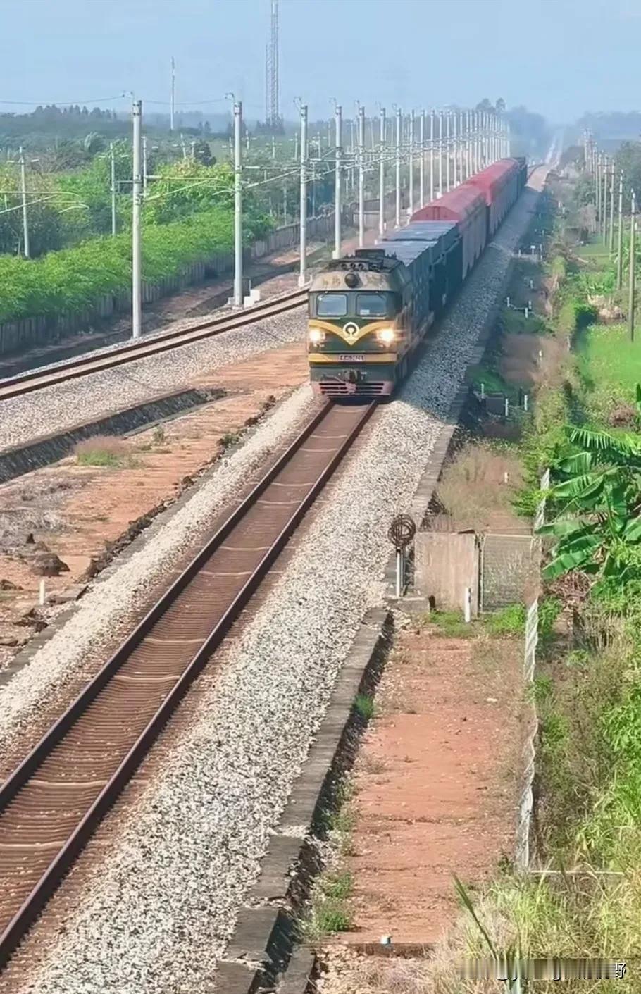 粤海铁路,大陆通往海南岛的唯一一条重要铁路干线。虽然是铁路干线,但受制于琼州海峡的隔离,前往海南岛的火车都需要通过轮渡进入岛内。所以导致线路的车流量一直受到限制,每天的通行量远不如其他的干线。目前线路上的货运列车的牵引机车为东风4B型内燃机车,配属广铁海段,与广茂铁路上广铁广段的西瓜机车涂装不同。