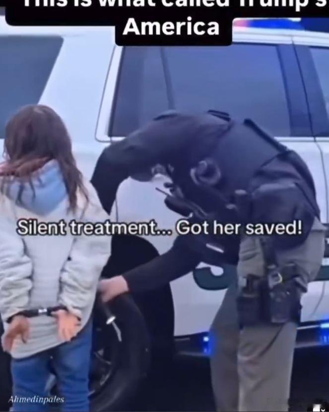 可怕!有美国网友发布的视频显示,美国移民局ICE对一名年仅八岁的女童戴上了手铐。