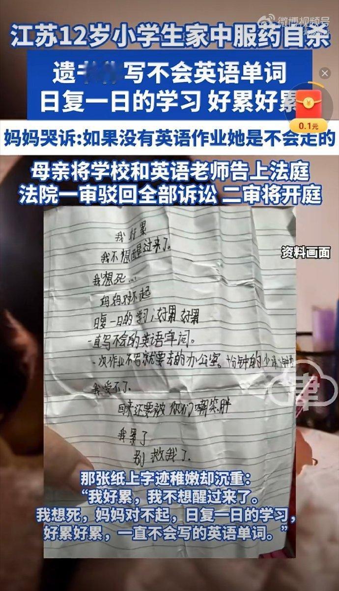 小学生家中轻生留下遗书称写不会英语单词,是英语老师的责任吗? 江苏12岁小学生