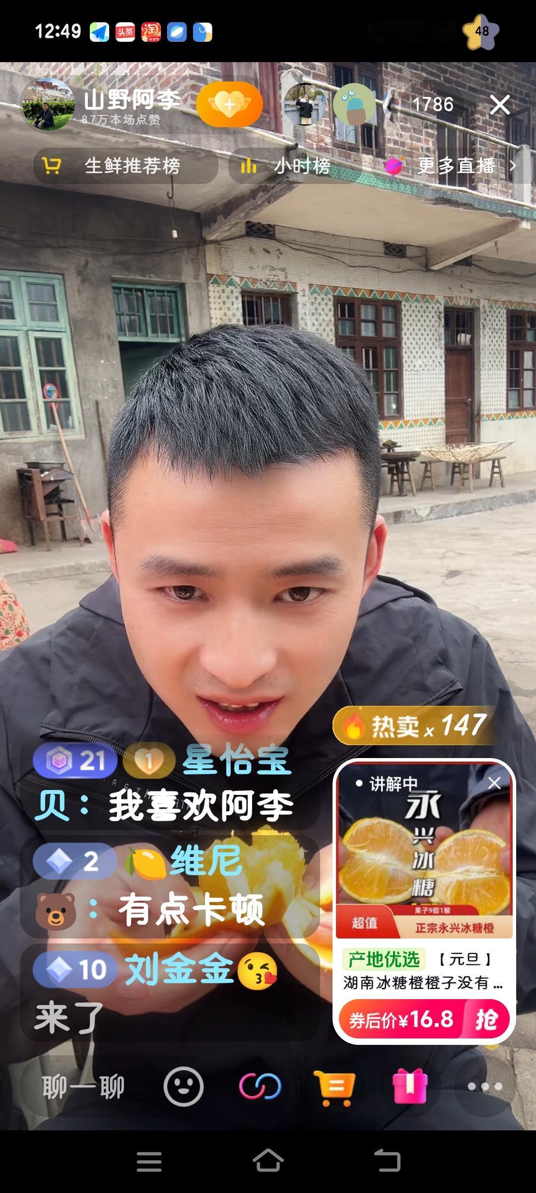 啤酒婶的儿子带货时,粉丝们相当给力,不是送墨镜,就是直接下单。由此可见,颜值确实很重要。直播间的人数始终维持在千人以上,阿李一直处于亢奋状态。2026年是阿李的幸运年,加油!