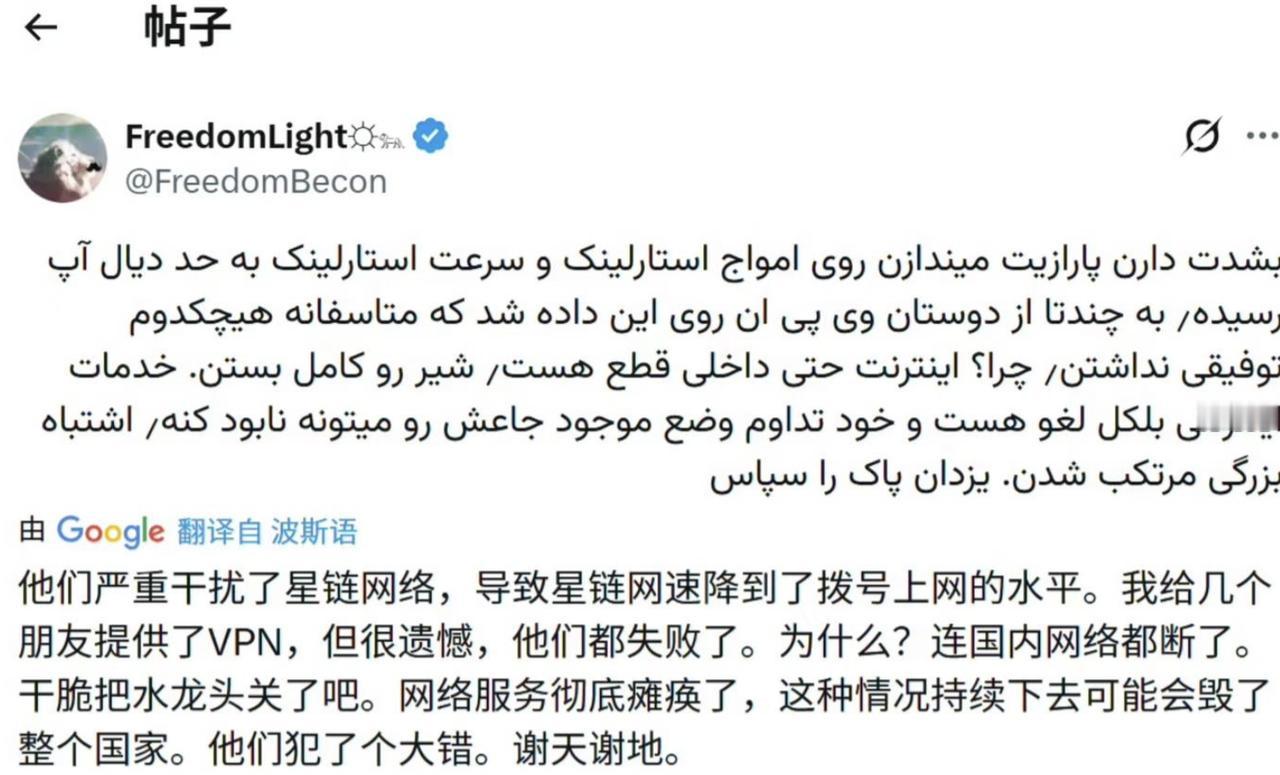 来了,来了,马斯克露出了狐狸尾巴。 在伊朗进行网络管控之后,马斯克的星链开始为