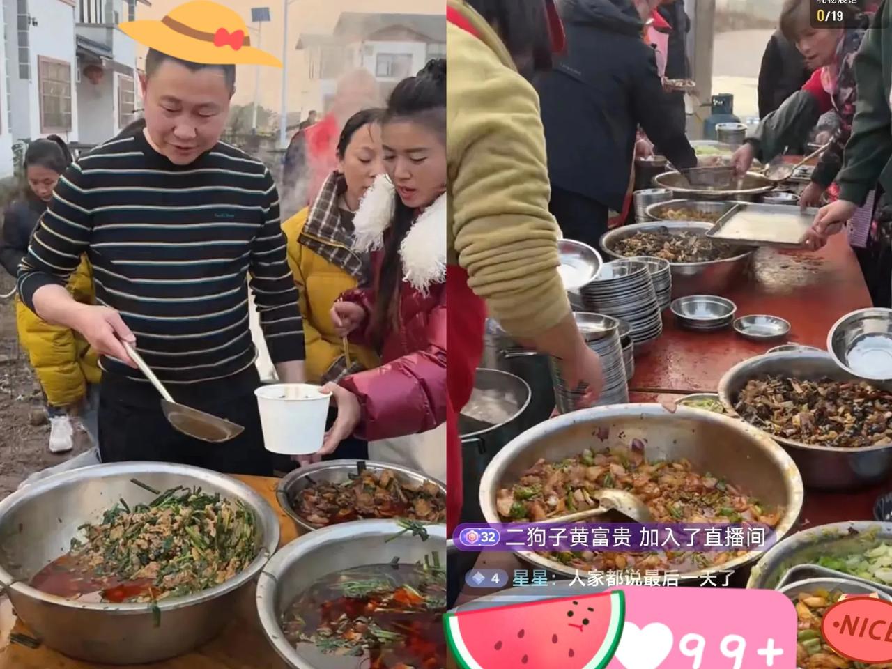 呆呆这边还在直播间里懵懵的说着:“明天不吃啦!” 另一边3公里远的隔壁村,嘿,可另一边3公里外的隔壁村,那可是热闹开了,年猪宴第一天,主播扯着嗓子兴奋地喊:“明天接着吃哈!这里是呆呆刨猪分宴,大伙都能来吃!” 这下呆呆不用懵了,隔壁村的兄弟姐妹果断接力,准备接住这波流量和人气! 这事儿有意思,一个热度带起一片热闹! 刨猪宴这些菜看着真不错呀,瞅着香香辣辣,很有食欲,都给我看馋了! 不知道接下来隔壁村这年猪宴还能整出啥新花样,大家觉得他们能借着这股劲儿火出圈不?
