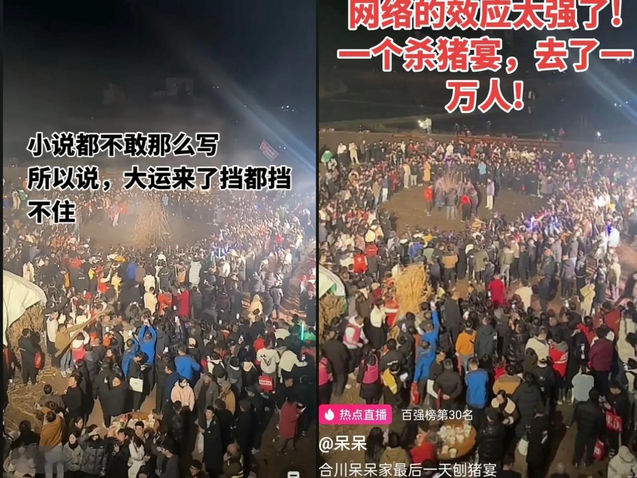 有个不好的预感, 呆呆家的年怕是过不好了, 细心的人肯定已经发现,呆呆3天前粉丝才几百个,这一转眼,现在都突破138万啦!他家猪都宰完了,可网上还有好多网友嚷着要来,不少人都已经在赶来的路上! 今天都第二天了,人还跟潮水似的,源源不断。眼瞅着马上要过年了,这么多人都聚在这,真不知道这年该咋过! 到底能不能把这烫手山芋变成好事儿呢? 今晚已经安排上篝火节了,现场很热闹,接下来就看文旅怎么安排了! 大家觉得会咋样?