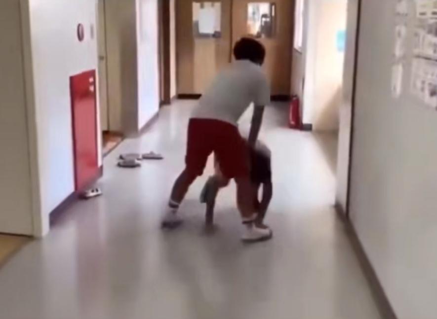 日本校园霸凌频发,栃木县一高中的校霸在男厕里面,对着同学一顿拳打脚踢,周围还有很多人在起哄,校霸越打越起劲,这两天一中学又要校园霸凌,一中学生殴打同学,用脚踹完然后补上拳头,同学想要逃走他赶忙追上去继续扭打