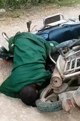乡间小路飞车更危险! 佤邦一名士兵驾驶摩托车,跟对向来的摩托车相撞,结果瞬间带