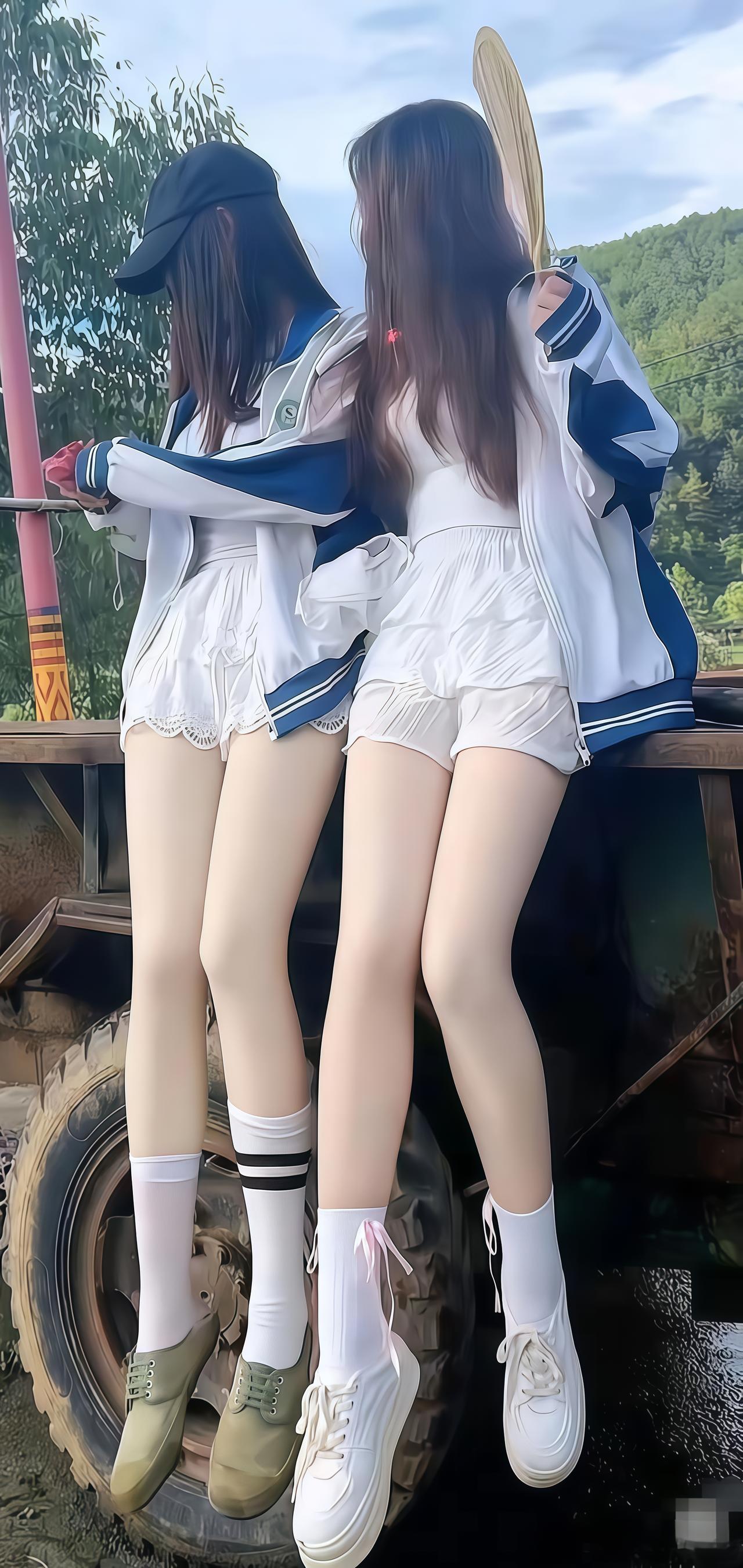 野径青春 柳风轻拂野堤旁,双影依栏趁晚光。 白衫漫卷少年气,短袂斜簪浅粉香。 屐底泥痕沾草色,鬓边云缕惹山苍。 此间不用寻芳径,自有清风伴疏狂。