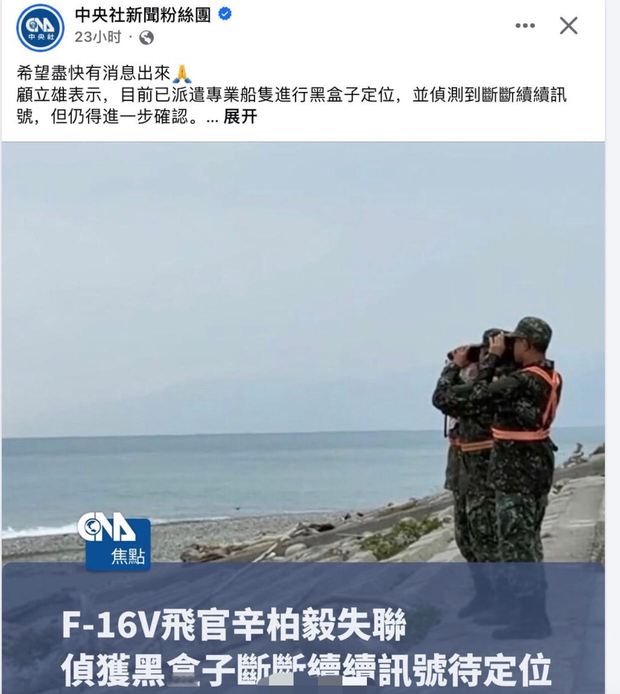 台湾人站在岸边用望远镜观察海面,以寻找已失事失联多天的F-16V战机飞行员、人没找到,但是黑匣子快定位到了。