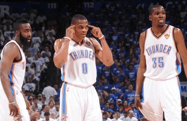 你敢信?图片中,这三个人曾经在一个队伍中。 怪不得当年热火三巨头,听到威少要被交易去火箭,他们集体笑了。 尤其是,詹姆斯笑得最肆意。 随着,今天哈登超越奥尼尔,他总得分也来到了28598分,升至NBA历史第九位。 杜兰特周五超越了张伯伦,历史第七位,威少第15! 而这三个人都是雷霆出品,目前,都在历史得分榜前15! 雷霆培养人才的能力,堪称顶级。